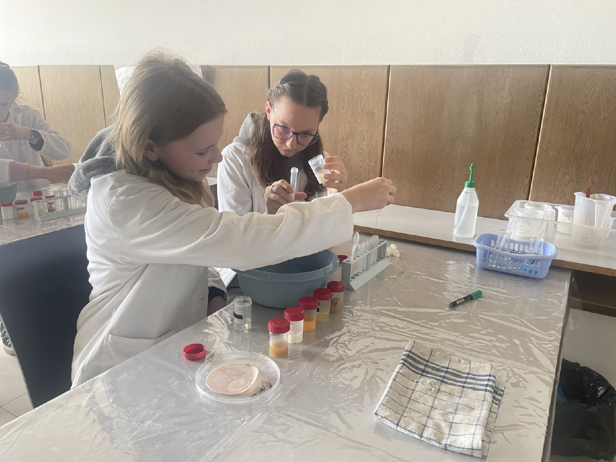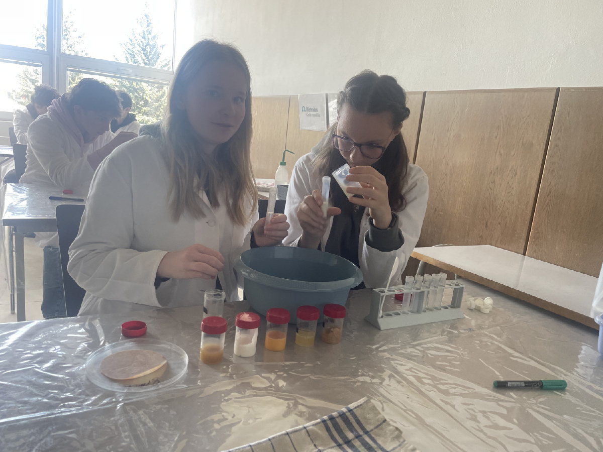 Naši deváťáci navštívili Ústav fyzikální chemie J. Heyrovského, kde si v rámci workshopu vyzkoušeli práci v laboratoři. Žáci se věnovali analýze a stavbě molekulárních modelů organických látek a praktickým důkazům bílkovin ve vzorcích potravin (mléko, jogurt, vajíčko, šunka, džus). Právě možnost samostatného experimentování a práce s modely pomohla žákům lépe pochopit strukturu látek, o kterých se běžně učíme v hodinách. Celý program doplnilo seznámení s odkazem nositele Nobelovy ceny Jaroslava Heyrovského. Pro žáky bylo přínosné především to, že si mohli vše sami osahat a vidět výsledky své práce přímo ve zkumavkách. Ing. Šárka Nováková
