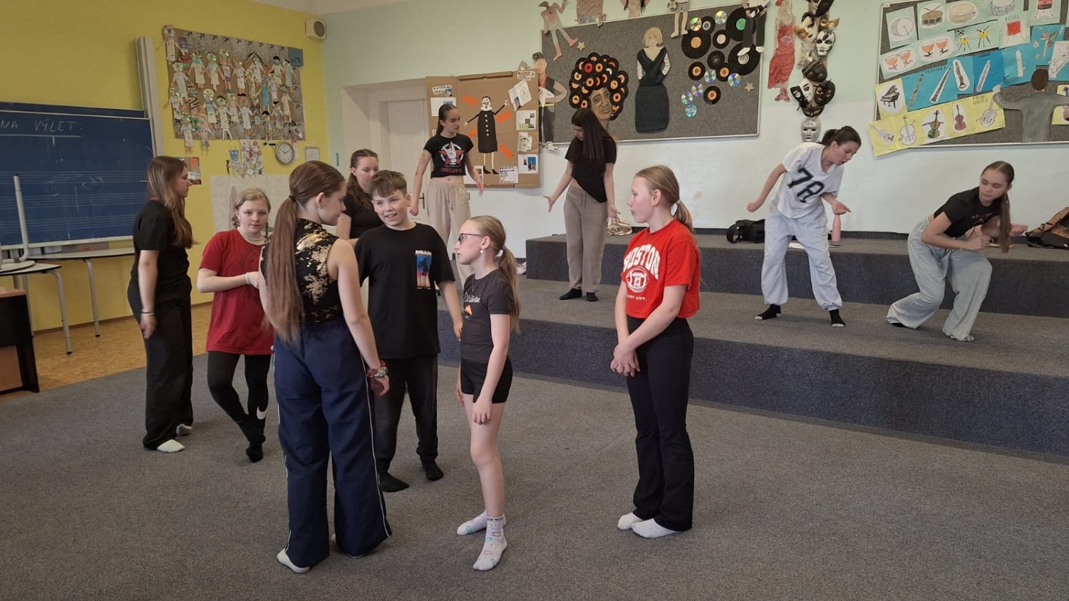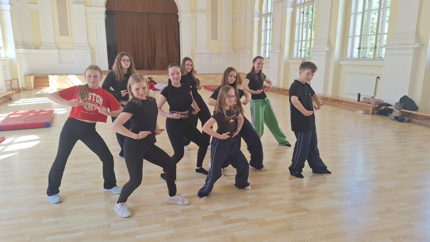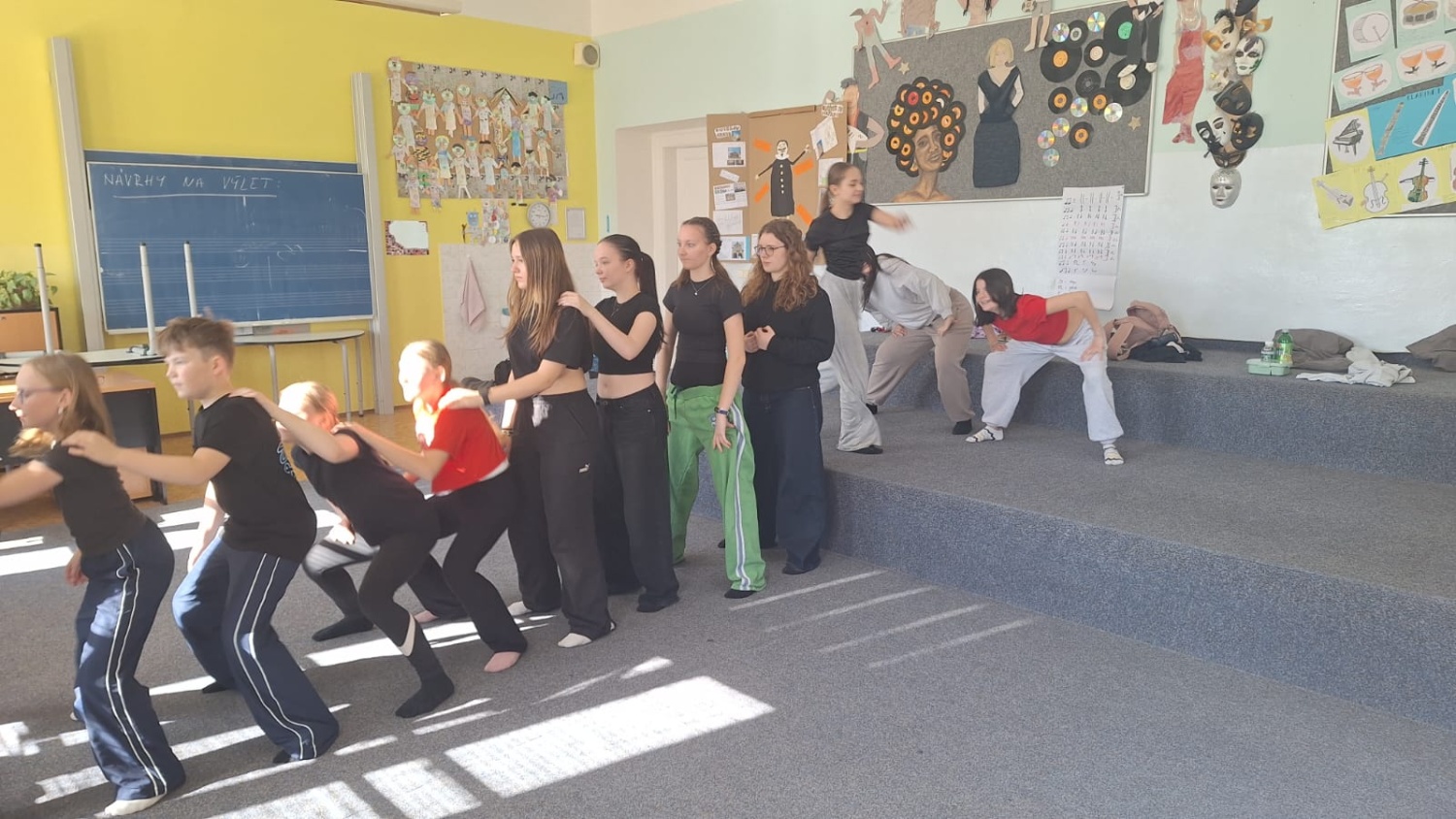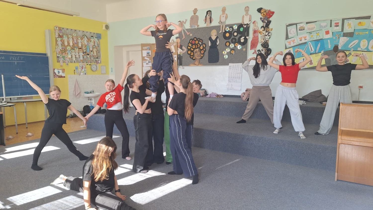 Naše taneční skupina – tvořená talentovanými dívkami a naším nepřehlédnutelným tanečníkem – má za sebou intenzivní dvoudenní taneční blok. Protančili jsme se skrz nové choreografie a ukázali, že tanec je o týmové souhře a radosti z pohybu. Všichni pracovali na různorodých tanečních číslech – od sólových vystoupení přes dvojičky až po větší skupinové choreografie. Velkou předností celé přípravy byla nejen chuť tancovat, ale také odvaha tvořit a přicházet s vlastními nápady. Mnohé tanečnice se zapojily do tvorby vlastních choreografií a samy si vybíraly hudbu, což všem tanečním číslům dodalo osobitost a originalitu. Celá taneční průprava byla nejen o pilování kroků a techniky, ale především o nadšení z pohybu, kreativitě a společném tvoření. Výsledkem je pestrý a nápaditý program. Mgr. Śárka Dáňová
