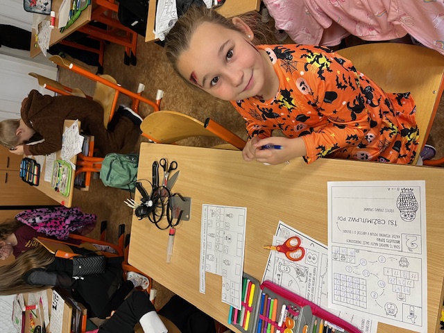 Ve III. D jsme si poslední říjnový den užili kouzelný Halloween. Děti měly za úkol zachránit paní učitelku, která byla zakletá v kočku. Čekala nás dobrodružná cesta plná šifer, křížovek, hádanek a her. Každý úkol kouzelnice a kouzelníky posunul blíž ke zrušení kouzla, a díky týmové práci a chytrým hlavičkám se dětem podařilo zakletí prolomit a paní učitelku osvobodit. Nechyběly parádní kostýmy, dobroty a spousta smíchu. Byl to den plný zážitků, na který budeme dlouho vzpomínat! Mgr. Martina Mrázková