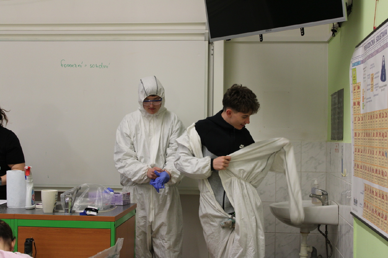 V pátek 6. března proběhla v IX. A a IX. B hodina moderní chemie na téma forenzní analýza. V úvodní části jsme si vysvětlili, co je forenzní analýza, jakou roli má operativec a vyšetřovatel a jak správně postupovat při vyšetřování. Dva žáci - operativci si tento postup prakticky vyzkoušeli. Zároveň jsme vyvrátili několik mýtů a nepravdivých postupů, které se objevují v detektivních seriálech. Na závěr jsme si vyzkoušeli techniku odebírání otisků prstů. Hodiny moderní chemie jsou popularizačním projektem VŠCHT Praha a jejich cílem je zábavnou formou - pokusy a dialogy - představit žákům na ZŠ a SŠ chemii v každodenním životě.