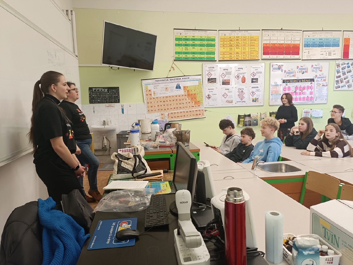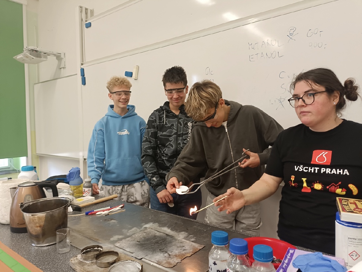 Ve čtvrtek 27. listopadu proběhly u nejstarších studentů hodiny moderní chemie a forenzní vědy. Osmákům a deváťákům přinesly pořádnou dávku objevování a experimentů. Osmáci si vyzkoušeli efektní pokusy se suchým a kapalným dusíkem, se střelným prachem a porovnali hořlavost celulózy a nitrocelulózy. Deváťáci se naopak ponořili do světa forenzní analýzy – naučili se roli operativce a vyšetřovatele, vyvrátili mýty z detektivních seriálů a prakticky si vyzkoušeli odebírání otisků prstů. Hodiny byly plná překvapení a inspirace pro mladé chemiky a detektivy. Ing. Šárka Nováková