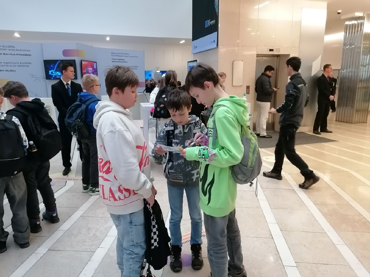 V pátek 21.listopadu se vydali páťáci z áčka a déčka na den otevřených dveří do agentury EUSPA. Hned od počátku je fascinovalo celé prostředí, kde se pohybovala řada cizinců a hned je upoutalo, že spolu všichni mluví pouze anglicky. Celý program zahájila přednáška, kde jsme se dozvěděli, co EUSPA je a co zajišťuje za služby. Bylo nám vysvětleno, co jsou to satelity, jak fungují a k čemu slouží systémy Galileo a Copernicus. Po půlhodinové přednášce jsme si prošli několik stanovišť, kde bylo vidět, co je výsledkem práce agentury EUSPA a zahráli si pár her. Největším tahákem pro děti byla možnost nechat si přes klíčovací plátno udělat fotografii sebe sama ve vesmíru. Přijetí zaměstnanci EUSPY bylo velice vstřícné a milé, děti si domů odnesly nejen zajímavé informace a poznatky, ale i několik dárečků. Mgr. Kateřina Vyčichlová