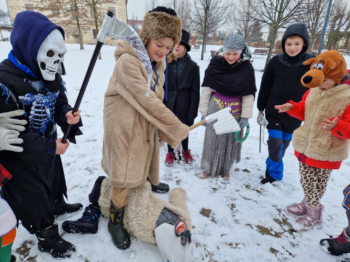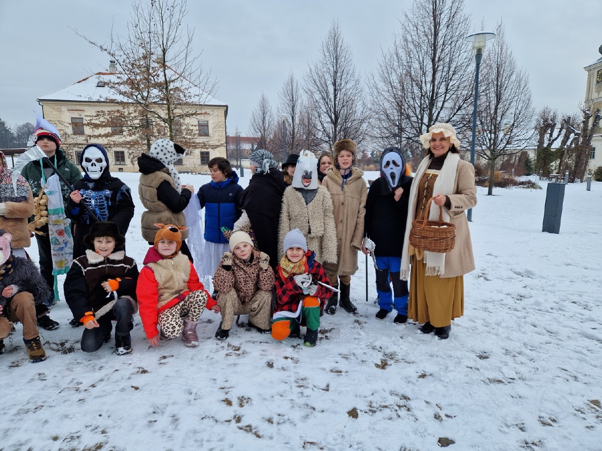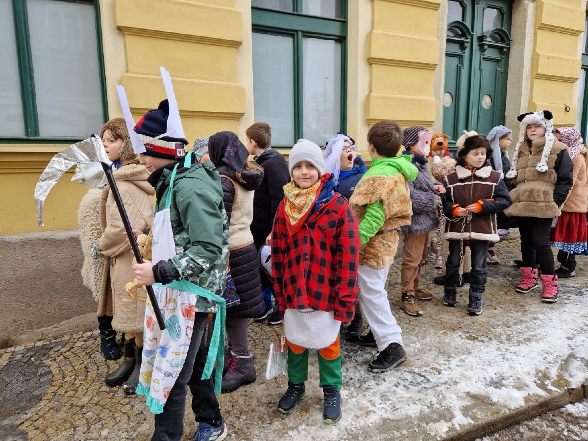 Třída III. A se jako každý rok vypravila v úterý 17.února na masopustní obchůzku po škole a potom se vydala na masopustní průvod s MŠ Pohádka. Nechyběly tradiční masopustní masky - nevěsta, ženich, medvěd, medvědář, ras, smrtka, kobyla, cikánka, šašek, kuchař, řezník, hrnčíř, hospodyňka,...Za zvuků kapely jsme prošli historickým centrem Kutné Hory a poveselili jsme hospodyňky i kolemjdoucí. Masopustní průvod byl zakončen přečtením hříchů kobyly a její porážkou. Moc děkujeme maminkám, paní Vančurové a paní Bukovičové za vynikající koblihy. Všichni jsme si masopustní veselí moc užili a rodičům moc děkujeme za přípravu masek. Mgr. Marcela Chroustovská
