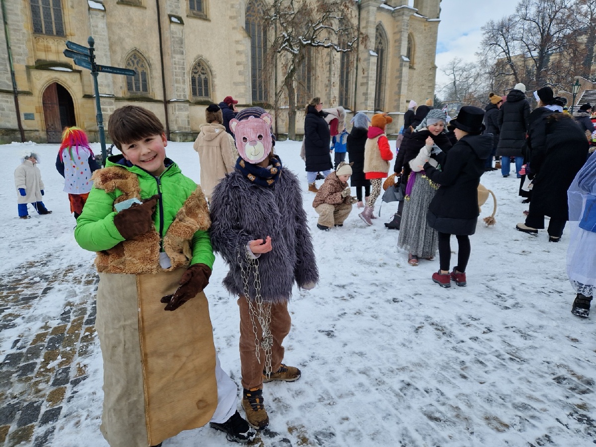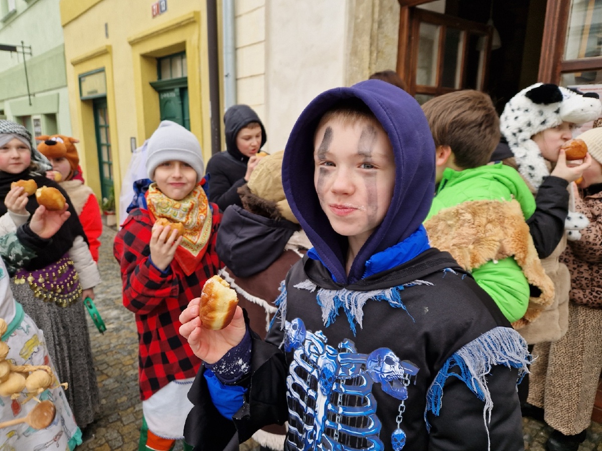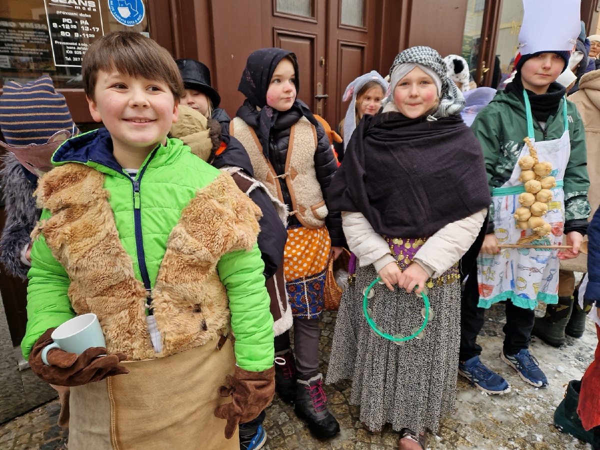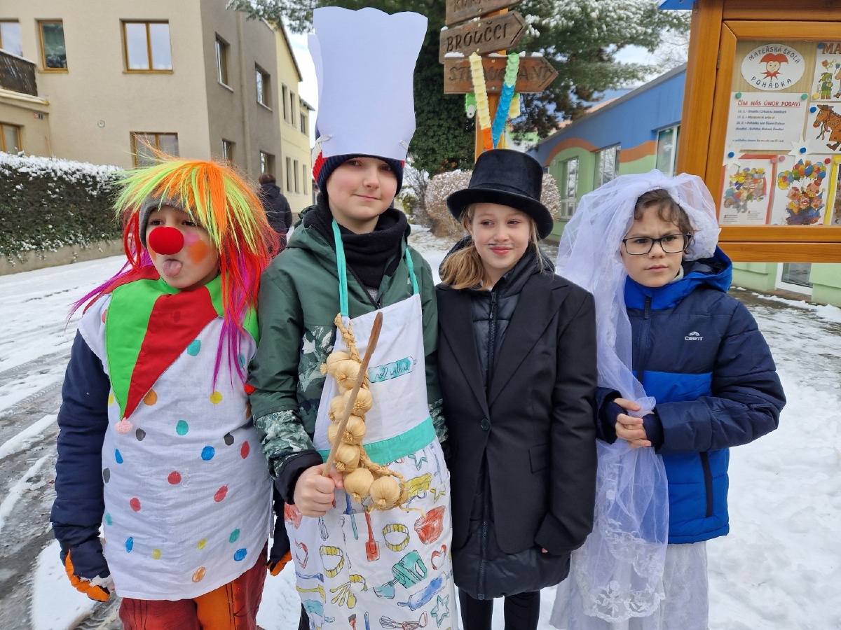 Třída III. A se jako každý rok vypravila v úterý 17.února na masopustní obchůzku po škole a potom se vydala na masopustní průvod s MŠ Pohádka. Nechyběly tradiční masopustní masky - nevěsta, ženich, medvěd, medvědář, ras, smrtka, kobyla, cikánka, šašek, kuchař, řezník, hrnčíř, hospodyňka,...Za zvuků kapely jsme prošli historickým centrem Kutné Hory a poveselili jsme hospodyňky i kolemjdoucí. Masopustní průvod byl zakončen přečtením hříchů kobyly a její porážkou. Moc děkujeme maminkám, paní Vančurové a paní Bukovičové za vynikající koblihy. Všichni jsme si masopustní veselí moc užili a rodičům moc děkujeme za přípravu masek. Mgr. Marcela Chroustovská