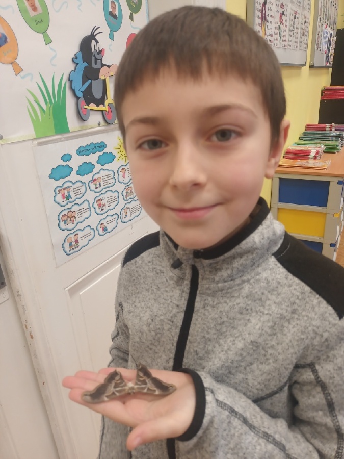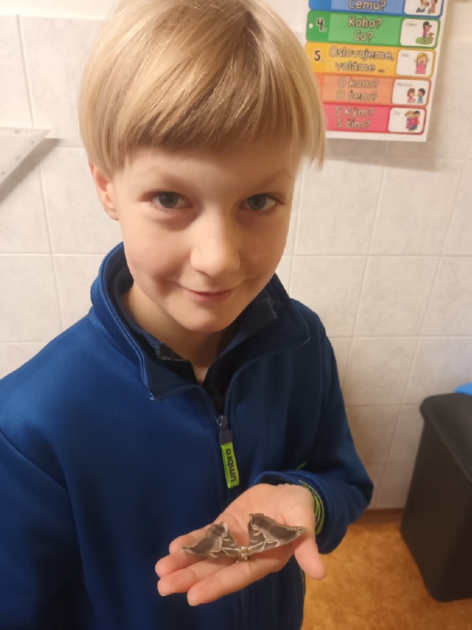 „Dobrý den, paní učitelko, chtěla byste housenky?“ Takovou neobvyklou, ale velmi lákavou nabídku obdržela třídní učitelka IV. B. Jedna z maminek totiž nabídla třídě housenky martináče pajasanového, aby děti mohly na vlastní oči sledovat jednotlivá stádia vývoje tohoto krásného motýla. Spolu s housenkami dostala třída také větvičky s listy, kterými se housenky vydatně živily, a návod k jejich péči. Čtvrťáci se o své nové „spolužáky“ vzorně starali – pravidelně jim rosili dočasný domov, velkou sklenici, a nezapomínali ani na úklid. Brzy přišel další napínavý okamžik: první housenka se zakuklila. Děti kuklu opatrně zavěsily na šňůru pomocí kolíčku a netrpělivě čekaly na další. Během několika dnů se dočkaly – na šňůře nakonec viselo čtrnáct kukel. Poté následovalo několik týdnů očekávání, až se z kukel vylíhnou motýli. A čekání stálo za to! Čtvrťáci si mohli prohlédnout i vyfotografovat nádherné martináče. Samičky dokonce nakladly vajíčka – a kdyby je samečci oplodnili, mohl by celý příběh s housenkami začít znovu. Mgr. Markéta Štifterová