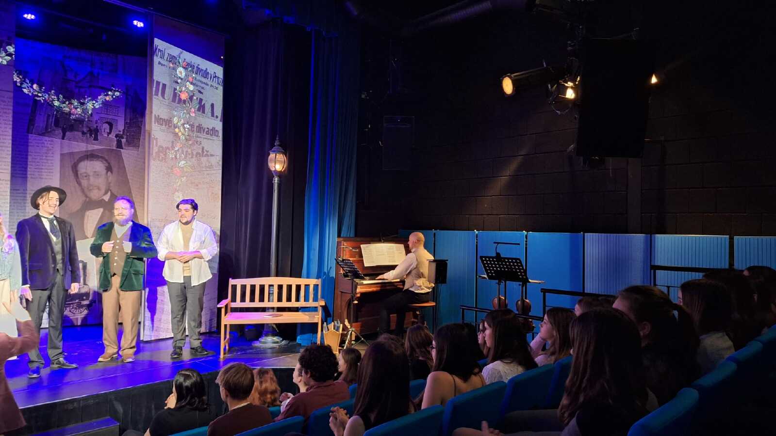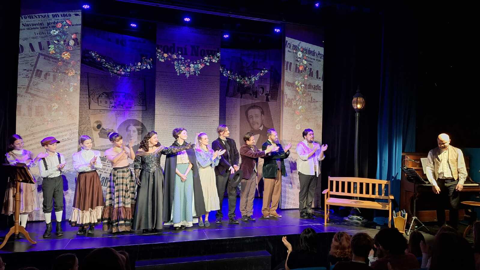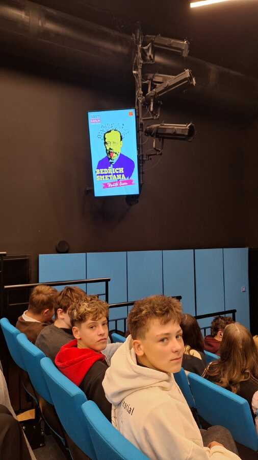 Ve čtvrtek 20. listopadu se zájemci z řad deváťáků vydali vlakem do Hudebního divadla Karlín, kde zhlédli zábavně-výchovné představení „Třináct lásek“. Cesta proběhla pohodově – ani chladnější počasí nikomu nezkazilo náladu. Naopak, ta se nesla v duchu společného povídání a sdílení. Samotné představení nabídlo poutavý a hravý pohled do života Bedřicha Smetany. Děti se dozvěděly, že slavný skladatel nebyl jen hudební génius, ale také kluk plný energie, dospívající mladík, později manžel, otec i dědeček. Představení přiblížilo jeho přátelství nejenom s Karlem Havlíčkem Borovským a Ferencem Lisztem, ale i jeho protivníky a životní překážky. Autoři A. a J. Pixovi představili Smetanu nejen jako skladatele polek, symfonií či oper, ale také jako člověka, který zažíval radosti, zklamání, velké lásky i nečekané životní zvraty. Vybraných třináct osudových lásek divákům poodhalilo svět Bedřicha Smetan s humorem, lehkostí a obrovskou dávkou energie. Z představení jsme si odnesli spoustu zážitků, nových poznatků a dobrou náladu, která nás provázela i během zpáteční cesty. Společně se budeme těšit na další návštěvu divadla Karlín. Mgr. Šárka Dáňová