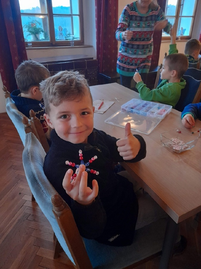 Prosinec byl pro prvňáčky z céčka především ve znamení návštěvy různých vánočních akcí, besídek a vystoupení a co se výuky týče - tak seznámení, poznávání a čtení malých tiskacích písmen. Žáci si užívali hodin tělesné výchovy s trenérem Bédou. Při hodinách hudební výchovy si s chutí společně zazpívali vánoční koledy a písničky. Nácvik z hodin pak využili i při návštěvě školní besídky a třídních vystoupení II. D a III. A, kde si neváhali s ostatními zazpívat. O Vánocích a vánočních zvycích se mnohé dozvěděli v knihovně a na Hrádku, kde byli na výstavě Vánoce na talíři a při té příležitosti si vytvořili krásné korálkové hvězdičky. Do třídy také zavítal Mikuláš se svou družinou čertů a andělů. Děti s radostí dodržovaly i většinu "speciálních dní" ze školního adventního kalendáře. V posledním týdnu se ještě stihly potkat se svými patrony ze VII. C. Na poslední školní den roku 2025 se děti moc těšily. Však také měly proč. Stromeček ve třídě byl sice letos malý, ale dárečků se tam vešlo dost. Největší radost byla z třídních kšiltovek, které děti pod stromečkem našly. Mají krásnou modrou barvu a každá z nich je opatřená jménem svého nositele. Všichni se moc těší, co jim nachystá leden. Bc. Lucie Kubínová