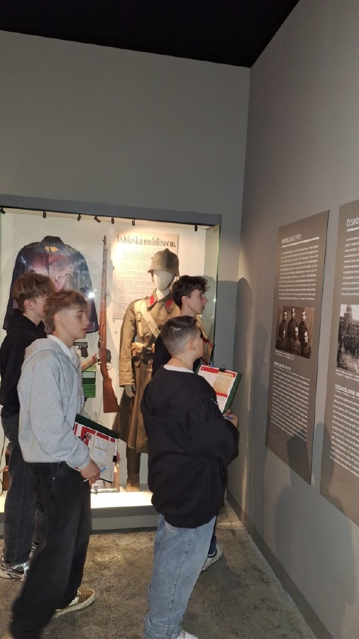 Naši osmáci v úterý 14. dubna absolvovali vzdělávací exkurzi v prostorách Armádního muzea na pražském Žižkově, kde se prostřednictvím interaktivních programů ponořili do zlomových momentů našich moderních dějin. Žáci VIII. A navštívili program s názvem První republika. Pomocí pracovních listů a expozice poznali okolnosti vzniku první republiky a její fungování až do roku 1938, a to především z vojenského hlediska. Dozvěděli se, jak se formovala československá armáda, jak to bylo se zbrojním průmyslem. Nedílnou součástí byla i část expozice, která se věnovala přímo struktuře, činnosti a úkolům československé. armády a státním symbolům.