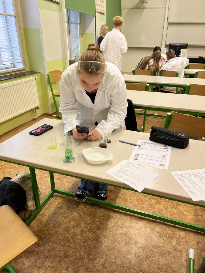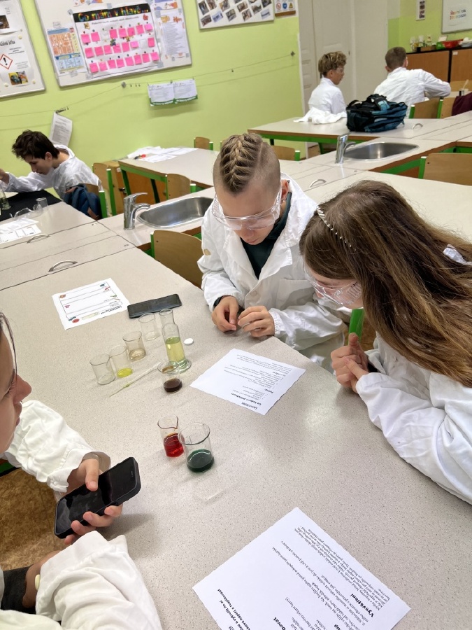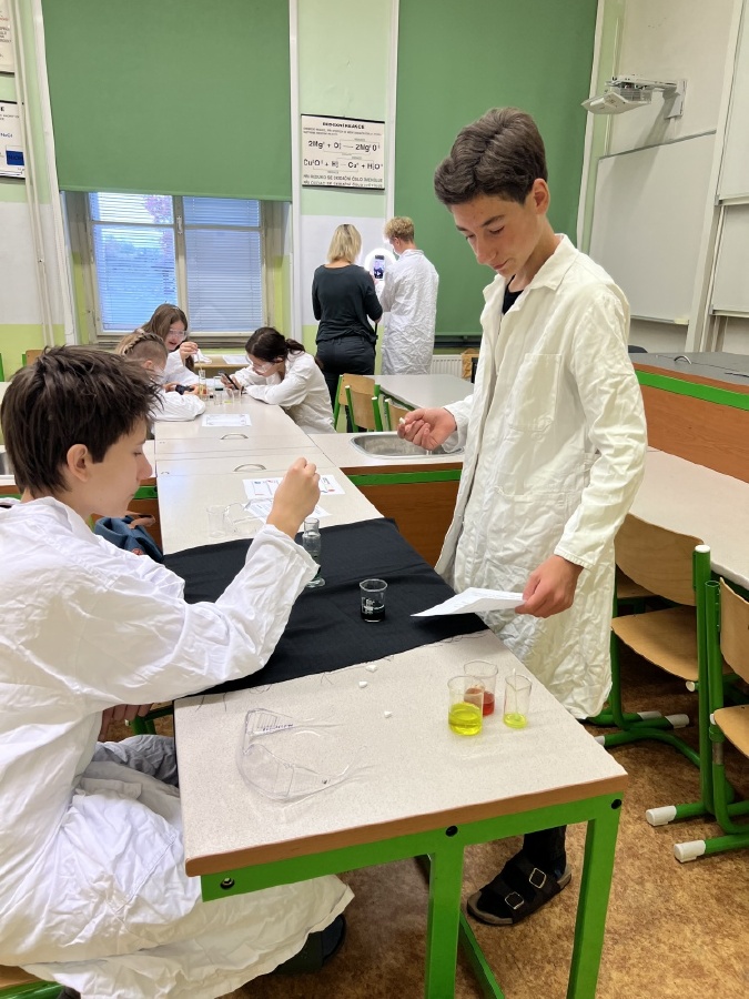 Naši osmáci si v hodině chemie vyzkoušeli barevné pokusy, při kterých sledovali fascinující proměny látek. Laboratoř se na chvíli proměnila v malé fotografické studio – žáci zachycovali krásu chemických reakcí na profesionálně laděných snímcích. Práci si naplno užili a prokázali, že i chemie může být nejen zajímavá, ale i krásná. Ing. Šárka Nováková