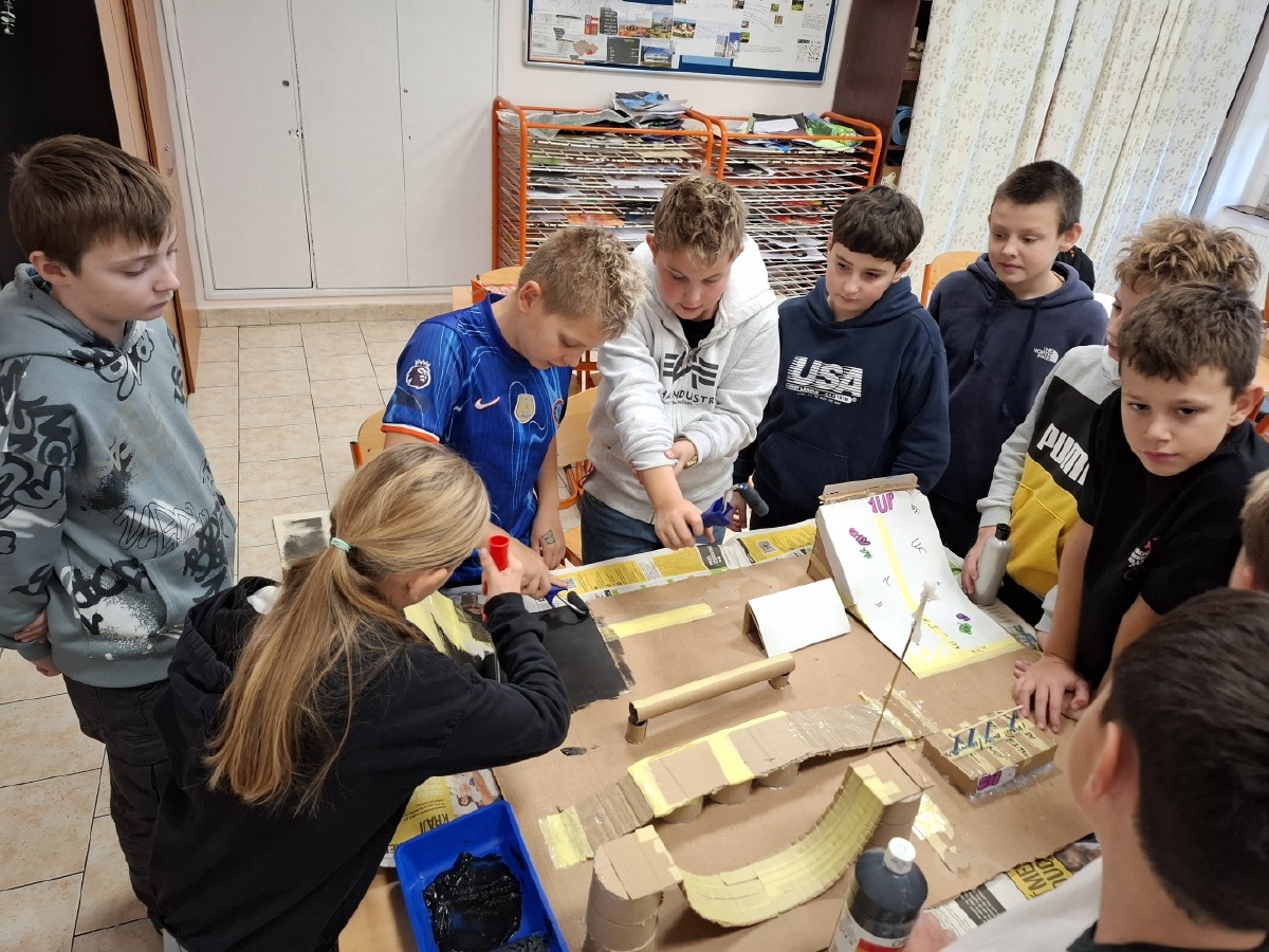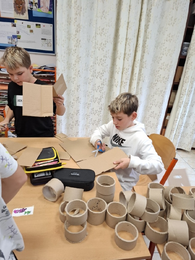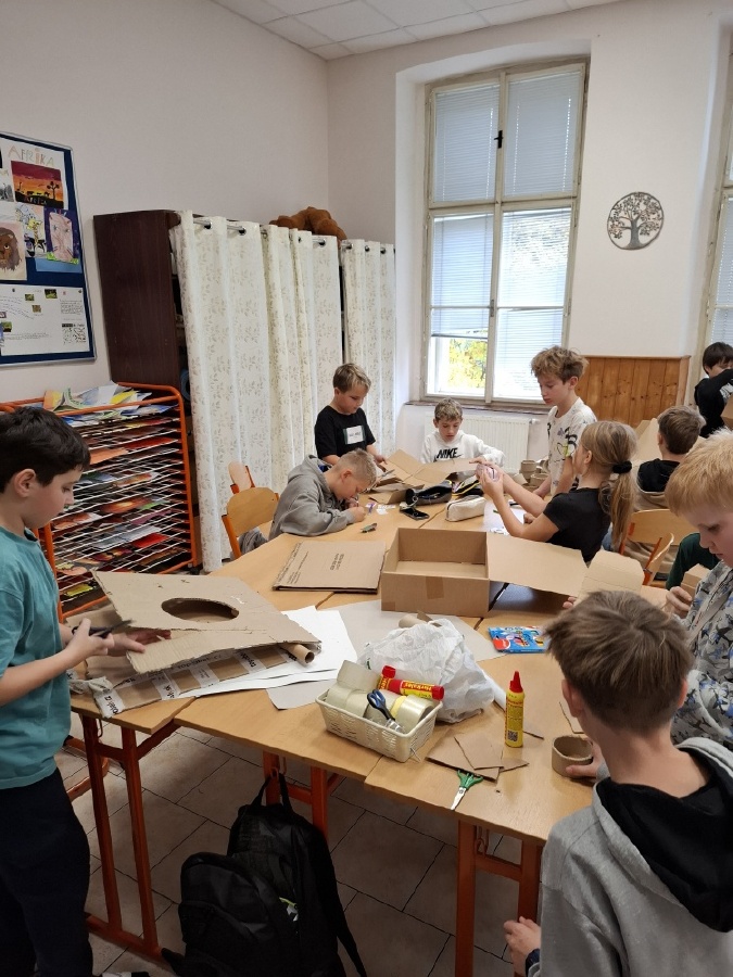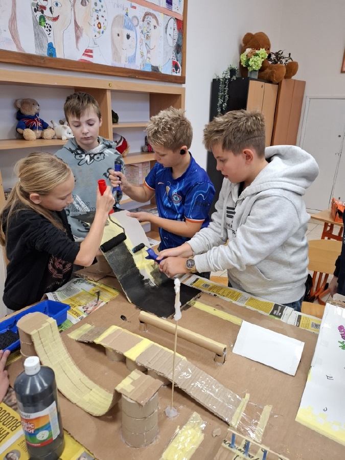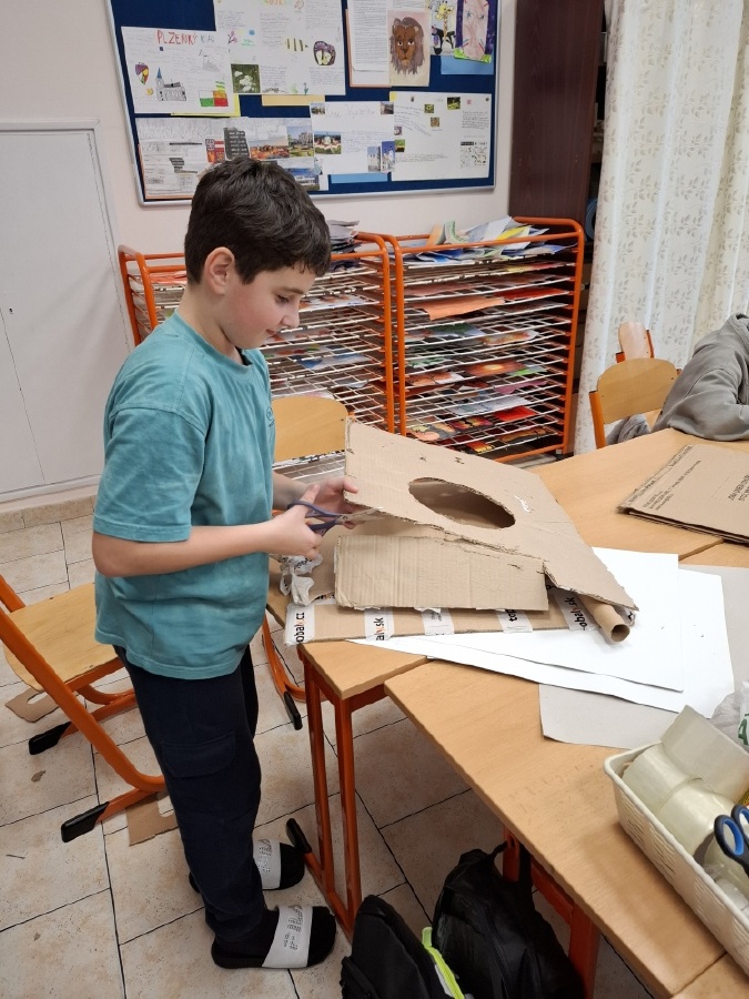 Hodiny výtvarné výchovy u nás v V.C patřily od konce října mimo jiné realizaci skateparku pro fingerboardy a prstové koloběžky. Do společného projektu jsme se pustili proto, abychom posílili dobré vztahy ve třídě. Zjistili jsme totiž, že spousta z nás má buď fingerboard nebo prstovou koloběžku, že nás baví s nimi dělat různé triky, ale nemáme pro to ideální prostor. Práce na skateparku nás opravdu bavila a ukázali jsme, že pokud se pro něco nadchneme, umíme být skvělý tým. Při výrobě jsme využili staré krabice a papírové role, takže jsme smysluplně využili materiál, který by jinak skončil v popelnici. Zároveň nám skatepark umožní trávit přestávky hrou a na mobilní telefony si ani nevzpomeneme. Zkušební provoz zahájí v učebně Z a pokud se osvědčí, umístíme ho na chodbu před učebnu, aby ho mohli využívat i ostatní. Mgr. Daniela Podoláková