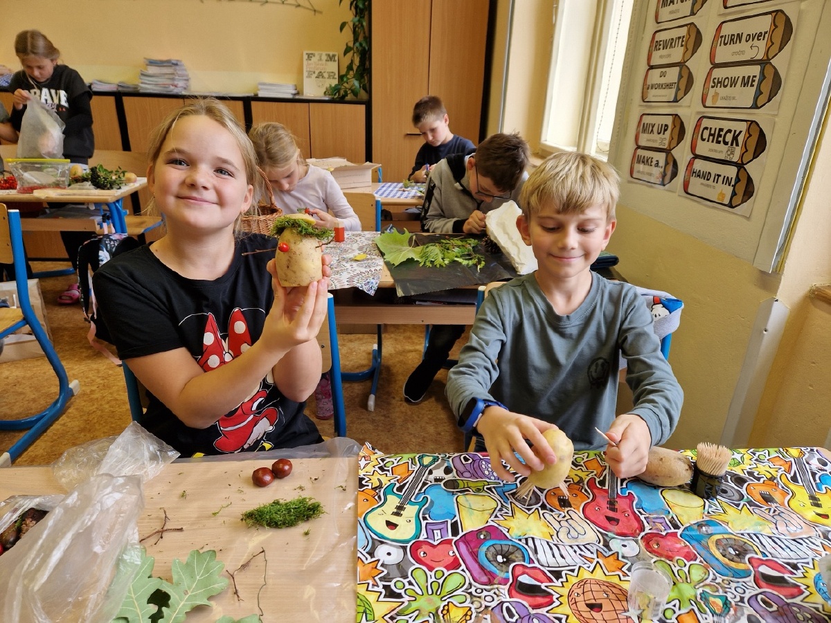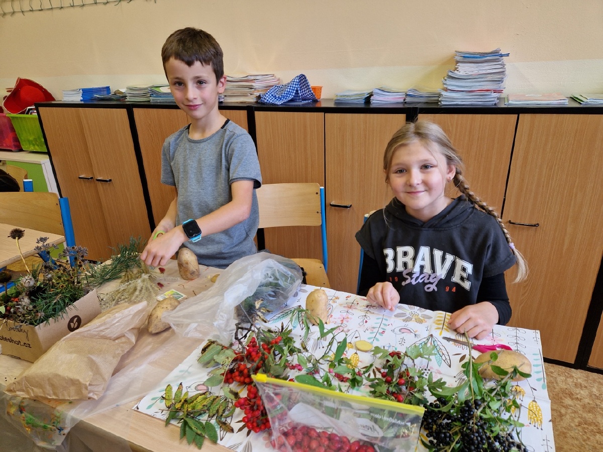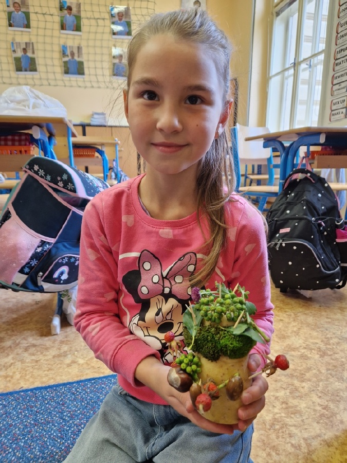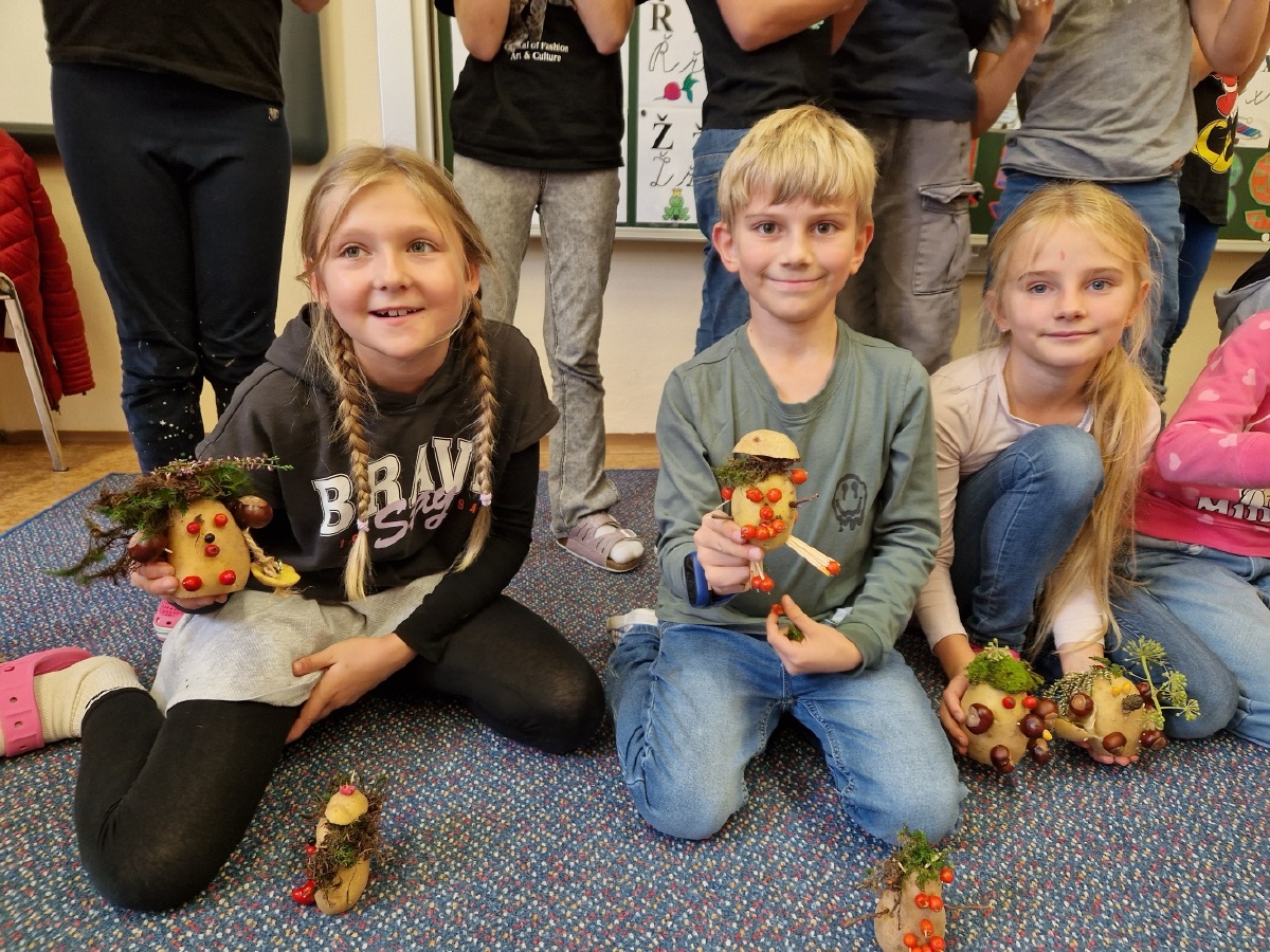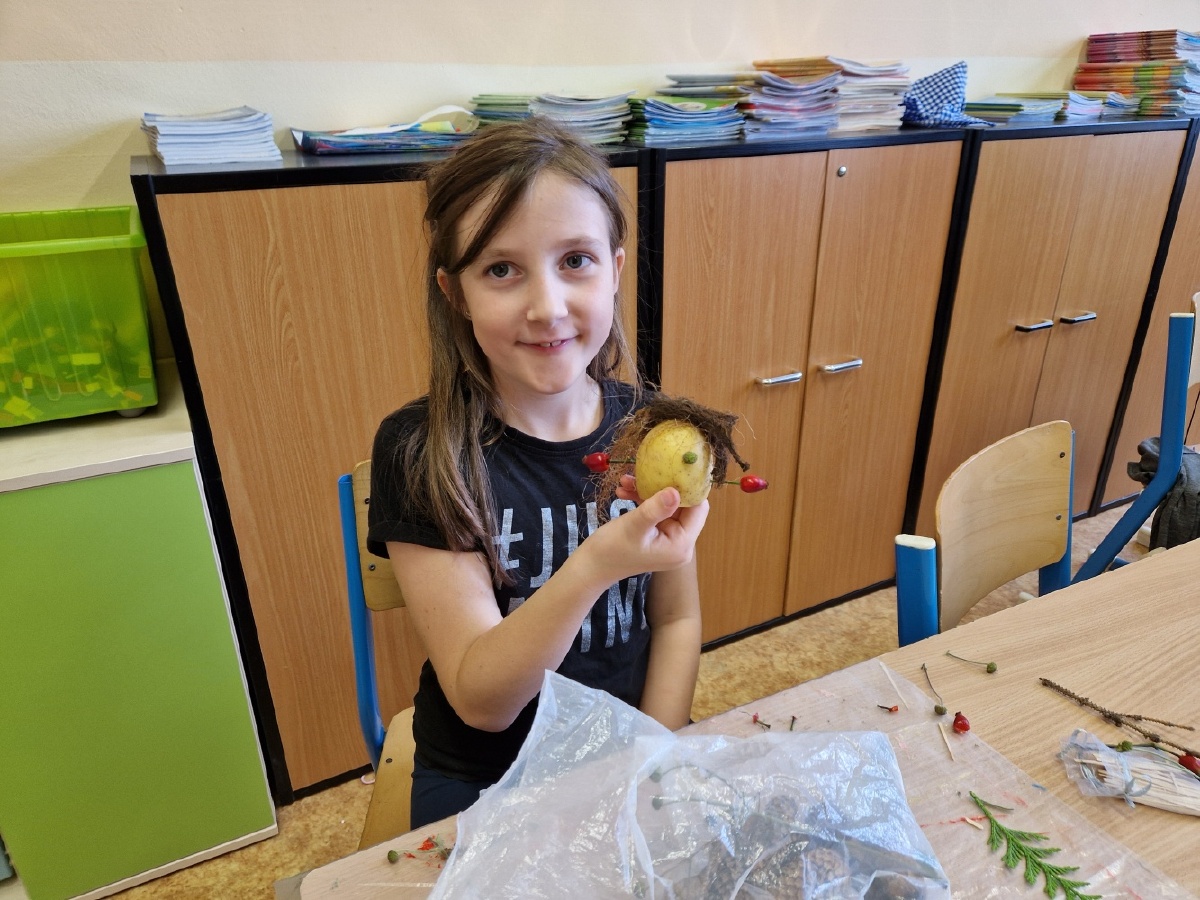 Podzimní příroda nabízí spoustu krásného a originálního přírodního materiálu pro kreativní tvoření. Toho využili třeťáci z áčka. Nasbírali různé přírodniny a vyráběli z nich lesní skřítky. Vymysleli jim jména, charakterové vlastnosti a ve skupinách si zahráli lesní příběhy. Tvoření je moc bavilo! Mgr. Marcela Chroustovská