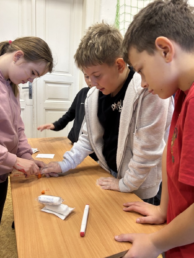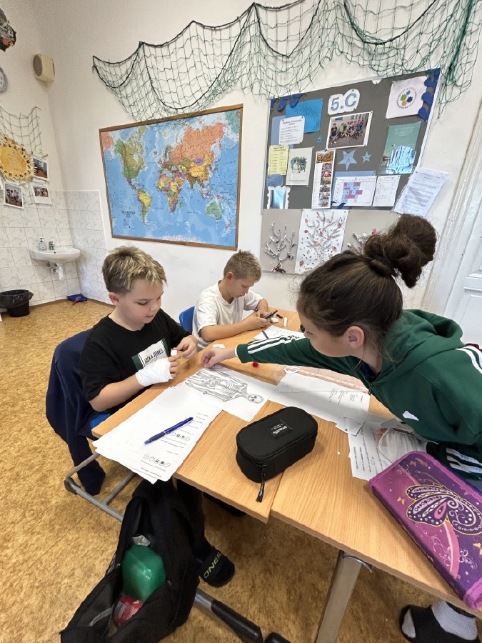 Děti z V. C se dnes v rámci projektového dne věnovaly člověku a jeho tělu. První část patřila informacím a nácviku první pomoci. Následovaly scénky s ukázkami, jak by neměla první pomoc vypadat a následně správný postup při poskytování první pomoci. Druhou část jsme věnovali práci ve skupinách a čekala nás tři centra s úkoly. Centrum rekordů, kde jsme poměřovali lidské rozměry se zvířecími. Centrum smyslů, zde jsme zkoumali chutě, vůně a procvičili jsme si hmat. V centru mediků a angličtiny nás čekalo složení lidské kostry, pojmenování částí těla, složení a pojmenování lidských orgánů nejen v českém jazyce, ale také v angličtině. Celý den jsme uzavřeli prezentacemi výsledků, hodnocením a zpětnou vazbou. Děti byly úžasné, patří jim velká pochvala. Společný čas jsme si užili na maximum a jako bonus jsme se dozvěděli i něco nového. Mgr. Daniela Podoláková a Mgr. Nikola Lukešová