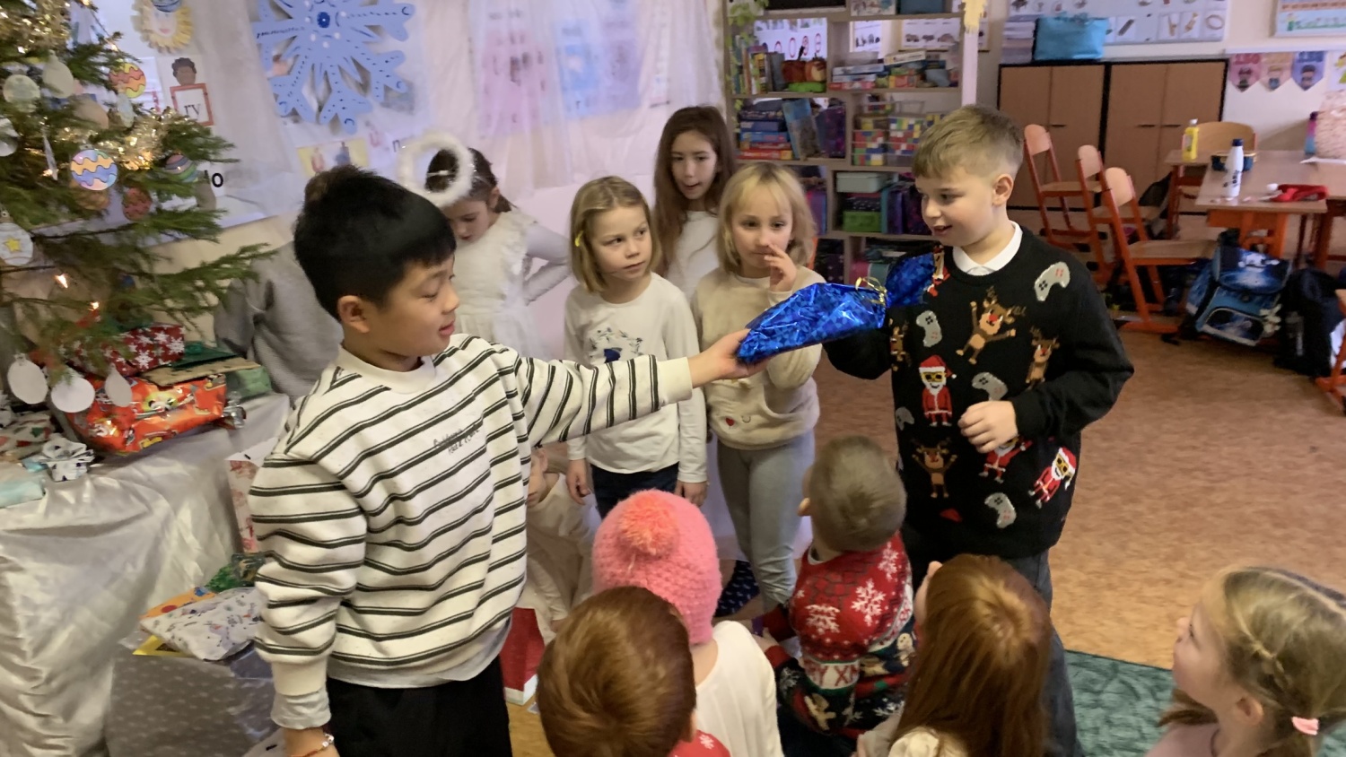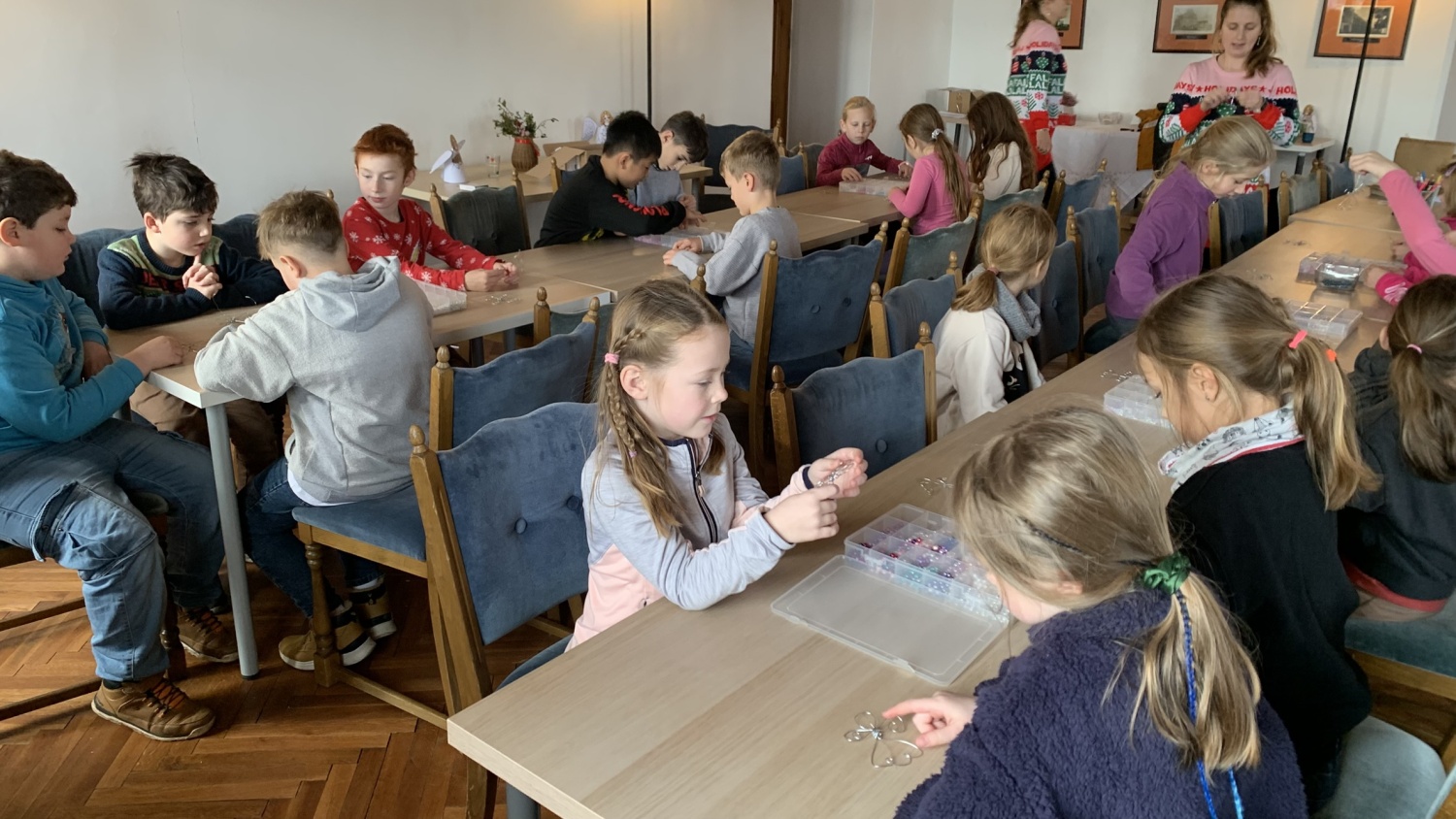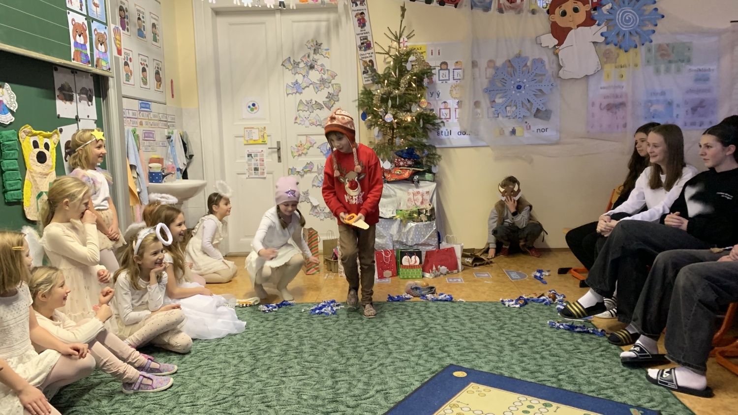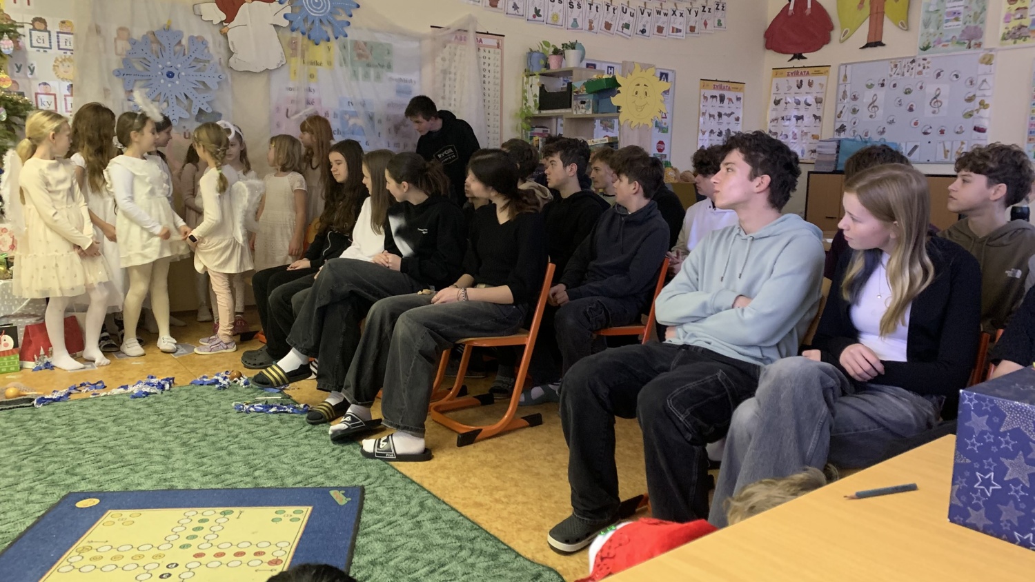 Druháčci z céčka měli v prosinci opravdu nabitý program. Navštívili městskou knihovnu, výstavu na Hrádku, kde si vyrobili anděla z korálků, také vzorně plnili každou výzvu ve školním adventním kalendáři - vyráběli společné přání, hráli piškvorkové turnaje, stali se na chvíli pány učiteli nebo hráli staré dobré (nejen) deskové hry….Vrcholem byla třídní besídka, kterou si pečlivě secvičili a zahráli rodičům, spolužákům i svým patronům z IX.C. Pozvali i paní ředitelku a dostali velikou pochvalu - hráli a zpívali krásně, nám dospělým, ukáply i slzy dojetí. Bohatou nadílku si opravdu všichni zasloužili. Mgr. Jaroslava Šibravová