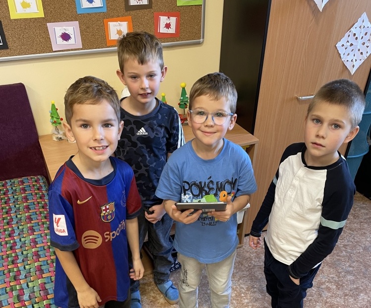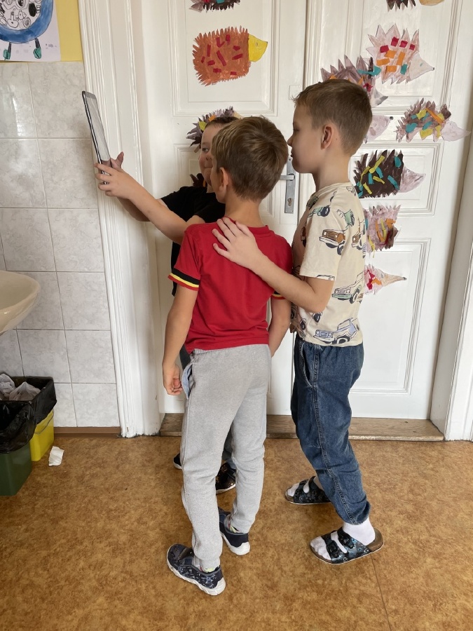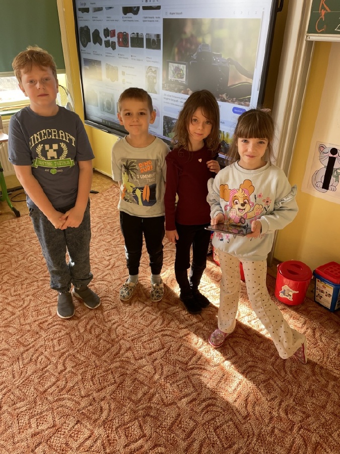 Prvňáčci z béčka a déčka si během tandemové výuky vyzkoušeli, jaké to je stát se opravdovými fotografy. S tablety v ruce hledali a fotili geometrické tvary v prostoru kolem sebe. Společně jsme si také ukázali, jak vypadaly fotoaparáty dříve a jaké používáme dnes. Celé focení bylo plné objevování a zábavy. Mgr. Martina Výborná