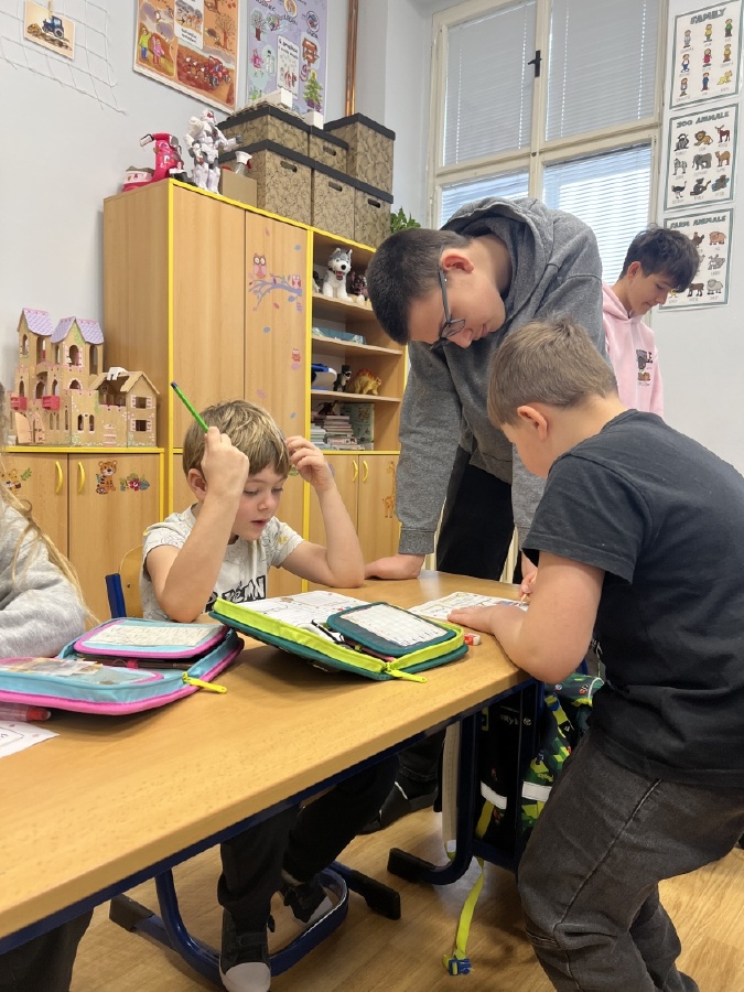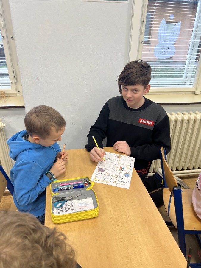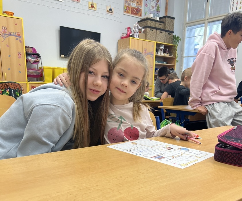V pondělí 30. března se v rámci patronátů odehrálo milé setkání sedmáků a prvňáčků z céčka. Sedmáci přišli navštívit své mladší kamarády – a nepřišli s prázdnou! Přinesli jim vlastnoručně vyrobené květináče z plastových lahví, které ozdobili a osadili jarními květinami. Ukázali tak, že i obyčejná plastová lahev může dostat druhý život a proměnit se v něco hezkého a užitečného. Společný čas ale nebyl jen o dárcích. Velcí a malí pomocí krátkého dotazníku zjišťovali, co mají společného, co je baví a co je pro ně důležité. Bylo krásné sledovat, jak si k sobě rychle nacházejí cestu. Celé setkání se neslo v radostné a přátelské atmosféře. Děkujeme třídě VII .C za milou iniciativu a těšíme se na další společné chvíle! Ing. Šárka Nováková, Bc. Lucie Kubínová