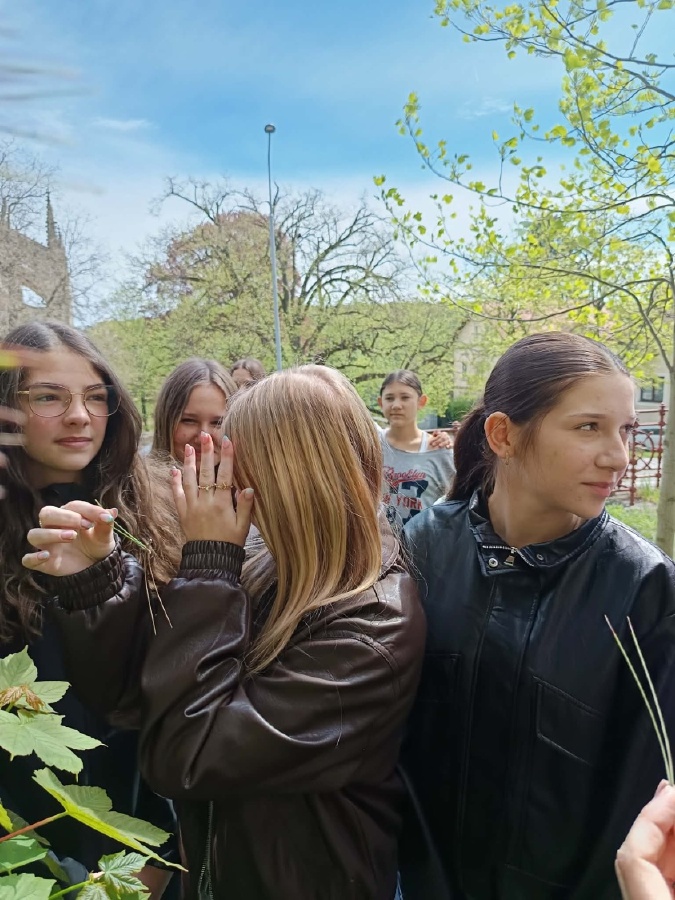 Ve čtvrtek 23. dubna vyrazili sedmáci z béčka na první jarní pozorování rostlin. Nešli daleko, svá pozorování zahájili hned před naši školou. K vidění je tady borovice černá a její dlouhé jehlice vyrůstající po dvou, právě kvetoucí smrk a přivoněli jsme také k jehličí cypřišku. Mgr. Jana Kořínková