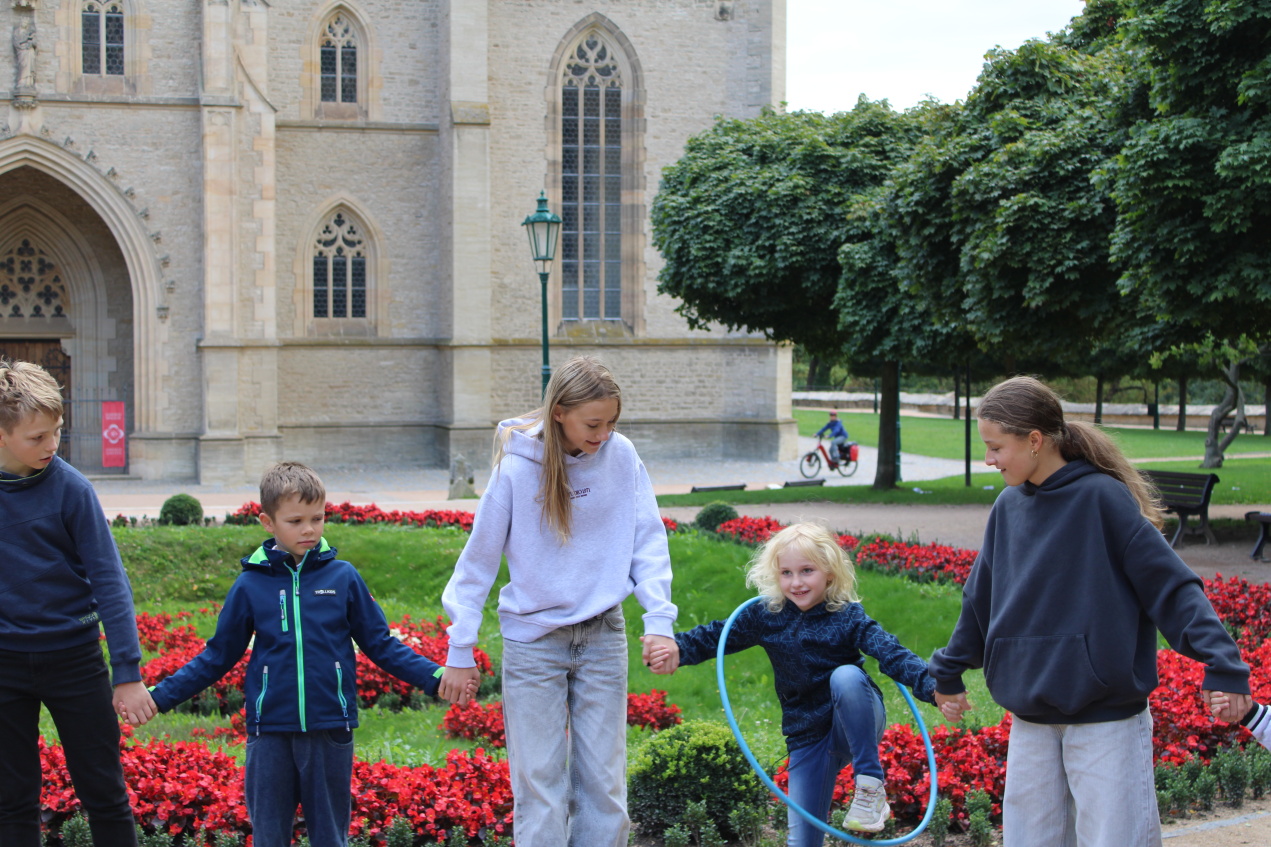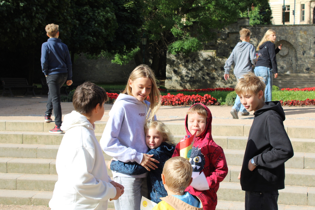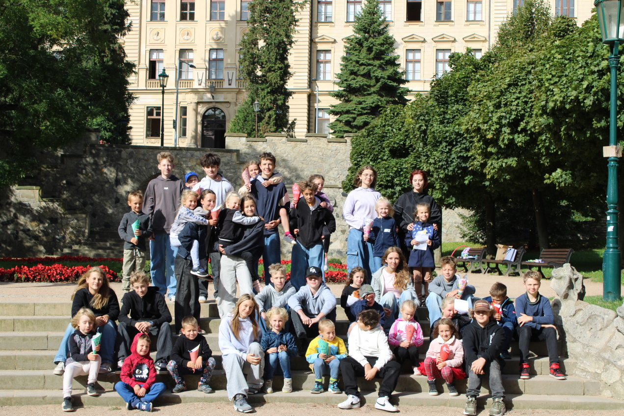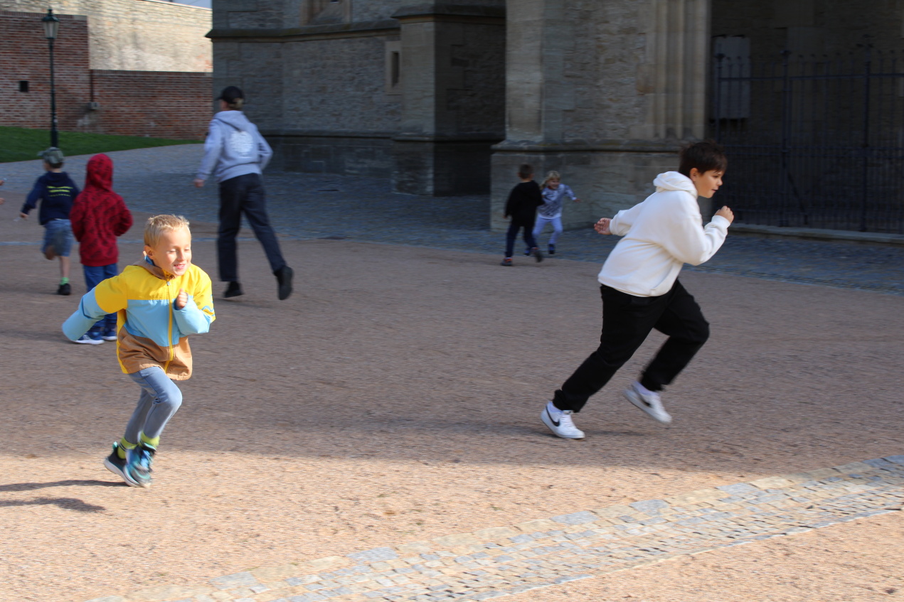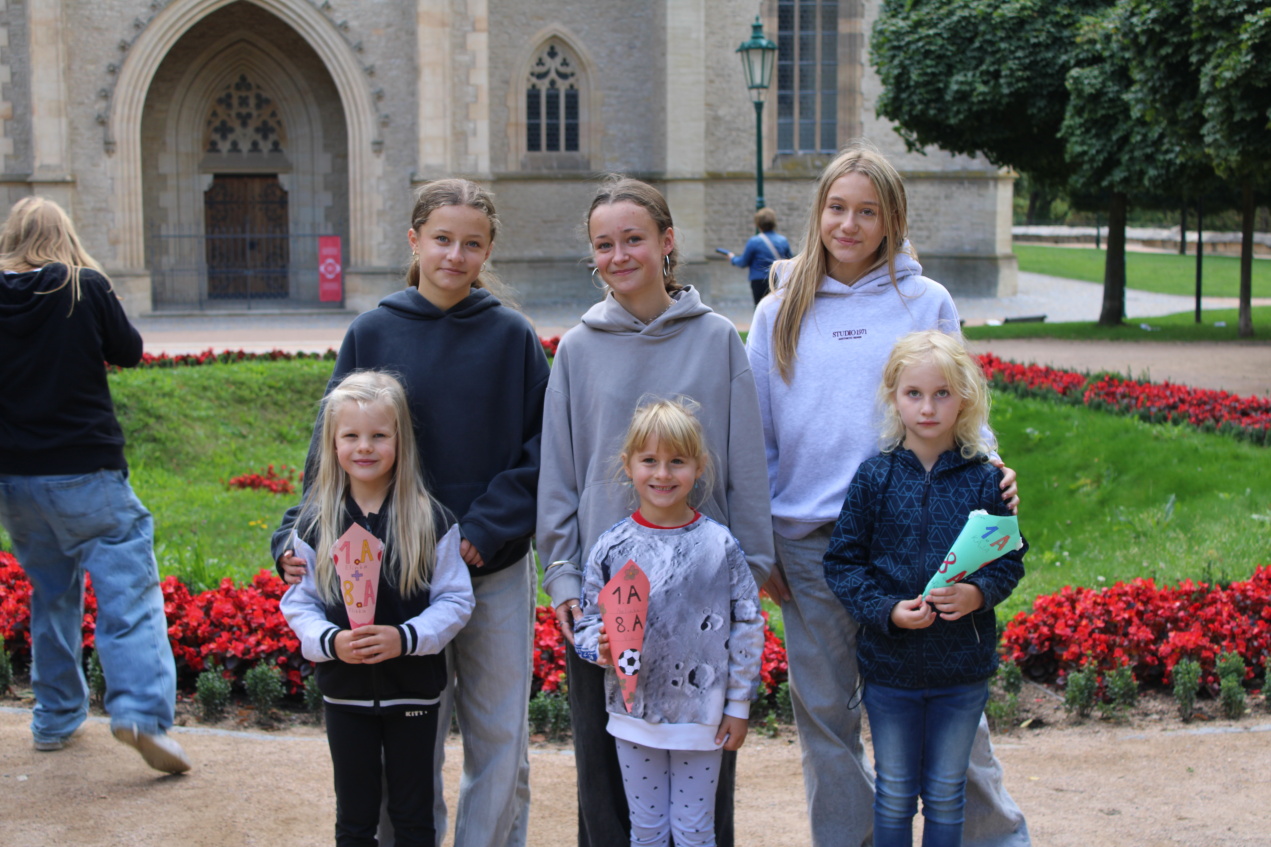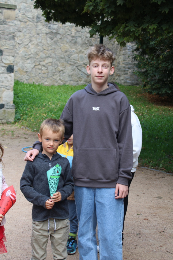 Ve středu 17. září zažili žáci VIII. A a I. A výjimečné dopoledne plné her, smíchu a radosti. Úžasnou kulisu pro společné setkání vytvořilo nejenom krásné prostředí u chrámu svaté Barbory, ale i sem tam slunečné počasí. Osmáci si pro své mladší spolužáky připravili pestrý program plný soutěží a zábavných úkolů – nechyběl hod na cíl, florbalový slalom, poznávačky, hádanky ani rýžování zlata. Každé stanoviště bylo promyšlené, nápadité a přizpůsobené věku prvňáčků. Nejenže si děti skvěle zasoutěžily, ale odnesly si i drobné odměny a hlavně spoustu zážitků. Velké poděkování patří osmákům nejen za přípravu a organizaci celé akce, ale především za jejich skvělý přístup, ochotu, trpělivost a laskavost, se kterou se malým kamarádům věnovali. Po hrách následovalo společné focení a loučení. Tak zase příště. Ahoj! Mgr. Šárka Dáňová, Mgr. Jana Němečková Růžičková