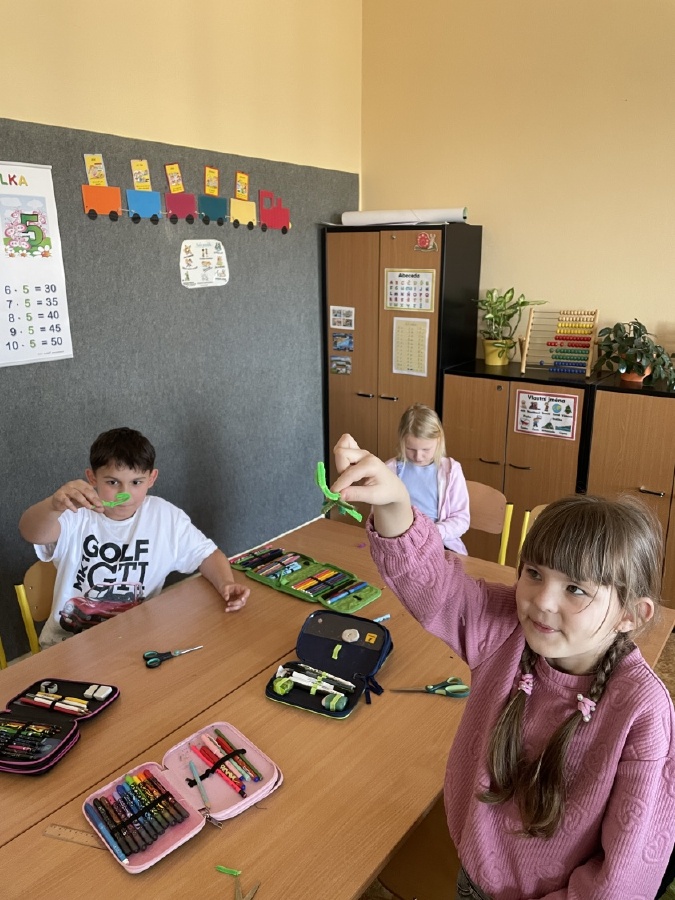 Druháci z béčka mají každý týden tandemovou výuku. Společně jsme se seznámili s programem: Příběhy Zipyho kamarádů, který pomáhá rozvíjet psychickou odolnost. Děti se prostřednictvím příběhů učí zvládat různé situace, se kterými se mohou v životě setkat. Při tvoření si žáci z chlupatých drátků vyrobili vlastní strašilky. V matematice jsme si procvičili násobilku pomocí pomůcky Logico Piccolo. Velkým zážitkem bylo focení a práce s QR kódy. Pod nimi se skrývala zábavná procvičení z angličtiny, prvouky i matematiky, takže si každý přišel na své. Na další společné hodiny se těšíme. Mgr. Martina Výborná