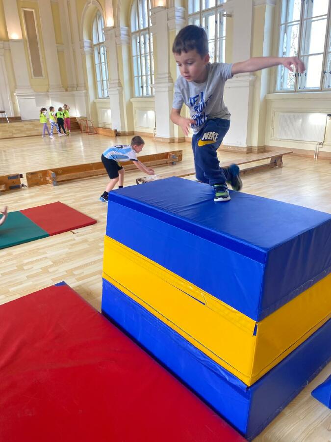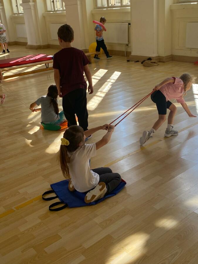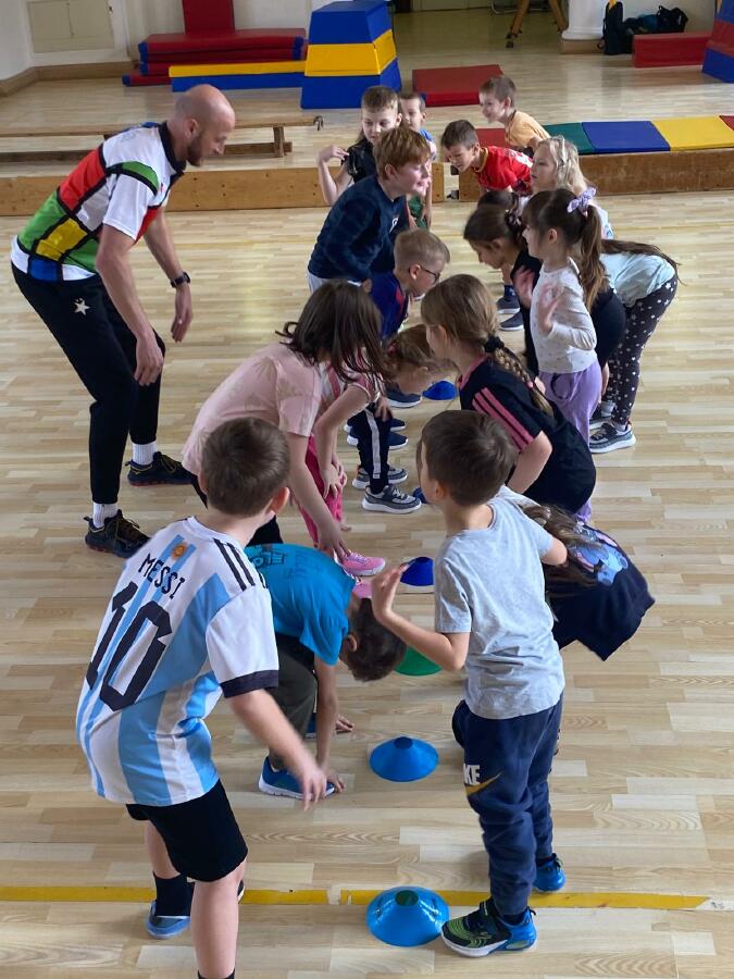 Děti z I. D jsou nadšené z hodin tělesné výchovy, které pro ně skvěle připravují trenéři v rámci projektu Trenéři do škol - Bedřich Franc, Josef Salák, David Holub a Andrea Kudláčková. Děti si už stihly vyzkoušet řadu netradičních soutěží a pohybových aktivit. Učí se spolupracovat, plnit dané úkoly a velký důraz je kladen také na fair play chování. Hodiny tělesné výchovy probíhají ve velmi radostné a přátelské atmosféře. Pohyb je pro děti zábavou a přirozenou součástí školního dne. Mgr. Štěpánka Menová