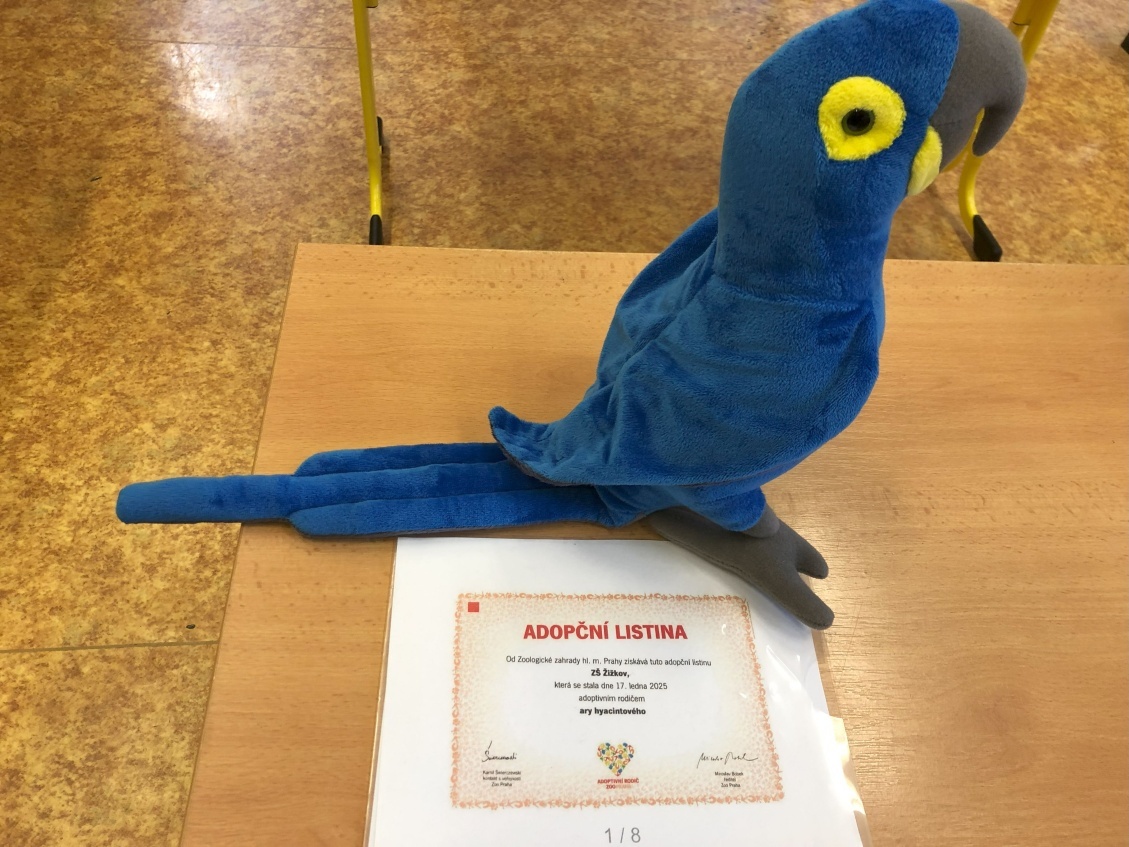 Žáci III.C se vypravili do pražské ZOO po stopách adoptovaného zvířátka (leden 2025) naší školou ZŠ Žižkov. Podle mapy našli papouška Aru hyacintového v Rákosově pavilonu. Zjistili, že je to největší papoušek světa a je přezdíván "modrým králem zelené Brazílie". Doma je v srdci Jižní Ameriky. Žáci bádali dál a zjistili, že je téměř na pokraji vyhubení. Byli loveni pro své nádherné kobaltově modré peří. Dnes je přísně chráněný. Pozorovali i jiné ptáky, savce, plazy a velemloky. Asi největší ohlas měli hroši, kteří žáky nadchli ladnými pohyby ve vodě. Mládě spalo kolmo těsně u skla a na nádech se vynořilo a zase potopilo a pokračovalo ve spánku. Třída si koupila plyšového Aru, který se okamžitě stal maskotem třídy. K němu přibyl deník a všichni si nadšeně berou Aru a deník domů, aby strávili společný víkend a sdíleli s námi své zážitky. Celá návštěva ZOO měla obrovský úspěch a zážitky se zvířátky si budeme pamatovat celý život. Mgr. Radka Krejdlová