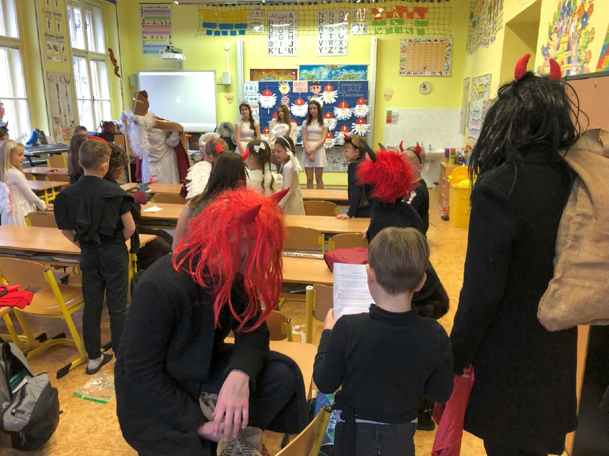 V pátek 5. prosince se třeťáčci z céčka převlékli za čertíky a andílky a hráli Mikulášskou únikovou hru. Když se totiž ve třídě schylovalo k nadílce, splašil se čert, celou nadílku odnesl a nevěděl, kde ji zapomněl. Žáci pak celý den plnili čertovské počítání, mikulášské kvízy a další úkoly, aby zjistili indicie, které je povedou k nalezení Mikulášské nadílky. Nakonec všechny indicie vedly do školní dílny, kde se zapomenutá nadílka našla. Hra všechny žáky náramně bavila. Mgr. Radka Krejdlová