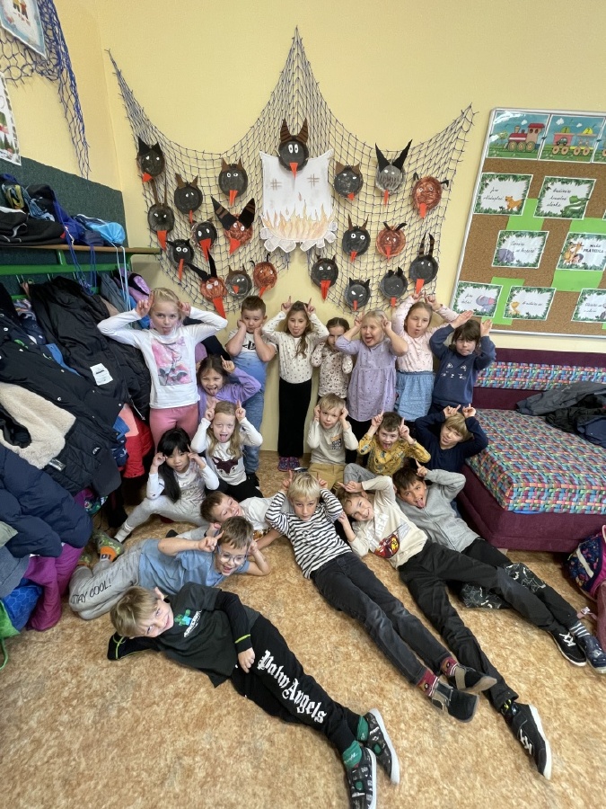 Prvňáci z béčka mají za sebou veselý podzim. Každý den se učíme něco nového. Čteme první příběhy, počítáme s kostičkami a také spolupracujeme ve skupinách. Společně jsme vytvořili obrazy do knihovny a při ukázkové hodině jsme s radostí přivítali rodiče, aby nahlédli do naší práce. Velkým zpestřením byl příchod nového trenéra Bédy France, který pro nás připravil netradiční běhání s novinami. Ve třídě jsme si udělali i naše vlastní peklo. A jak dnes řekly samy děti: Těšíme se na Vánoce! Mgr. Martina Výborná