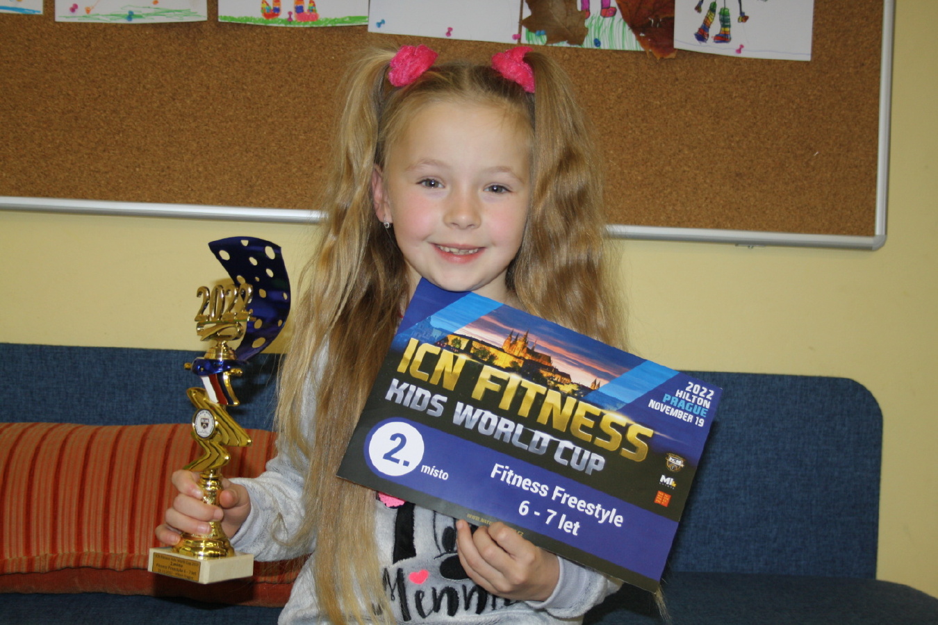 Amálka Jiráňová z I. D se s námi podělila o svůj velký úspěch. Na mezinárodní soutěži ve fitness dětí a mládeže ICN Fitness Kids World Cup 2022, která se konala v sobotu 19. 11. 2022 ve foyer kongresového centra hotelu Hilton Prague, ve své kategorii Fitness Freestyle 6 - 7 let vybojovala krásné 2. místo. Gratulujeme a přejeme hodně dalších úspěchů!