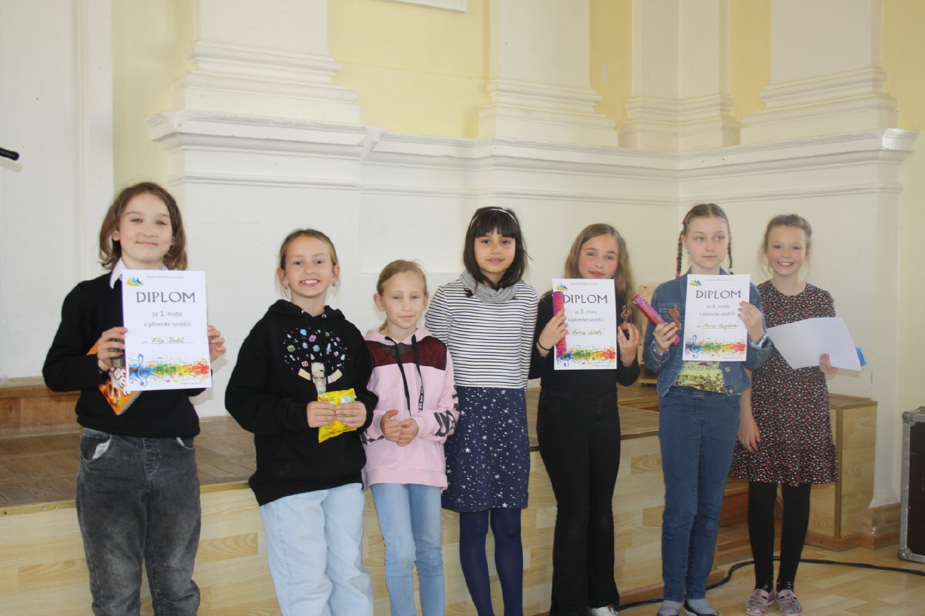V pátek 26. dubna zněla celou školou od rána hudba a zpěv - pořádali jsme totiž další ročník naší pěvecké soutěže. V pěti kategoriích vystoupilo přes sedmdesát dětí, zanělo téměř padesát skladeb. Hlavní organizátorka, paní učitelka Dáňová, zařadila do programu i krátké instrumentální skladby našich šikovných hudebníků. V publiku se vystřídala téměř celá škola....Jak dopadly první dvě kategorie, zpěváci od první do třetí třídy, se dočtete dále...