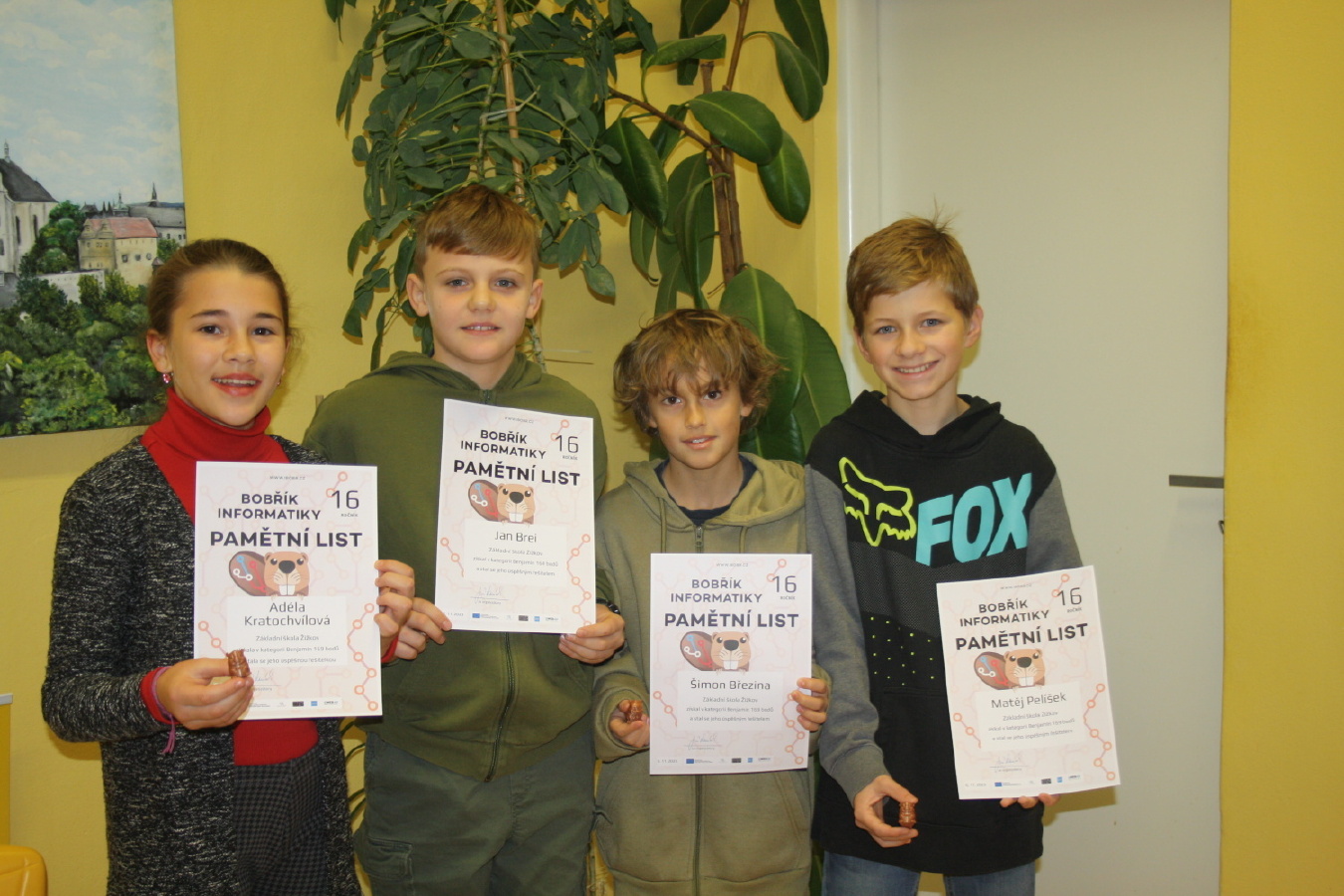 Bobřík informatiky je předmětová soutěž, podporovaná Ministerstvem školství, která cílí na bystré hlavičky se zájmem o svět technologií. Soutěží se v pěti věkových kategoriích od 4. ročníku základních škol až po maturanty. Soutěžící odpovídají na otázky z oblasti informatického myšlení, algoritmizace, porozumění informacím, řešení problémů a digitální gramotnosti a poznávají, že informatika není totéž, co ovládání počítače. Soutěžící vyplňují online test, v němž vybírají z několika odpovědí nebo přemísťují objekty na obrazovce. Na naší škole vynikl Štěpán Janoušek, který získal plný počet bodů. Štěpán soutěžil v kategorii Kadet, která bohužel nemá ústřední kolo, takže své dovednosti bude moci případně poměřit až příští rok.