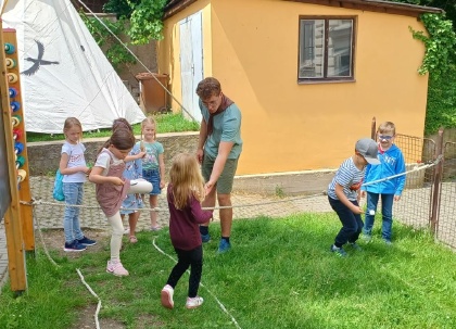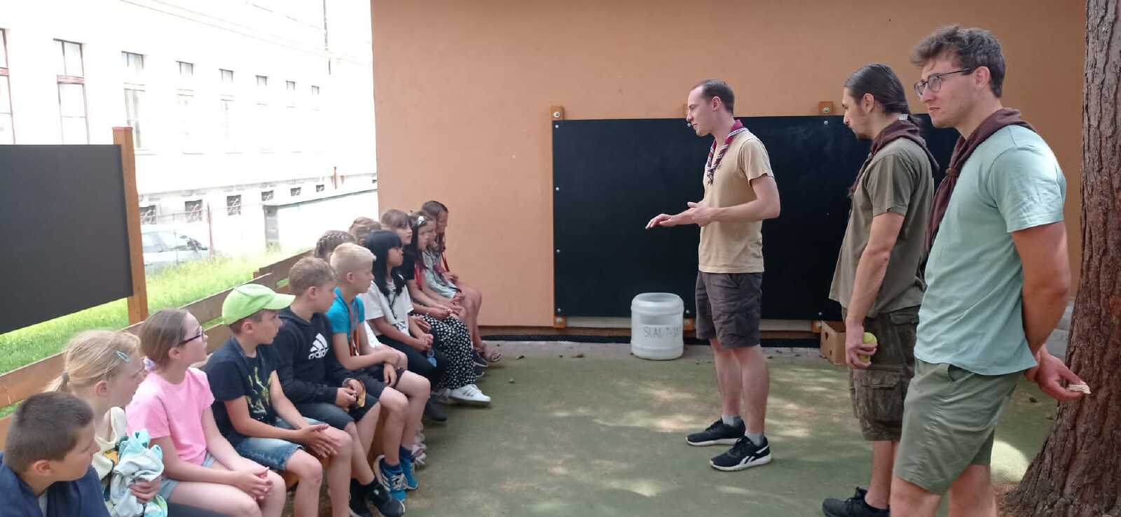 Ve čtvrtek 8.6. k nám do družiny zavítali skauti. Pro děti si připravili příjemné odpoledne plné zábavných úkolů, představili jim svou činnost a také jim ukázali, co je tzv. týpí stan.