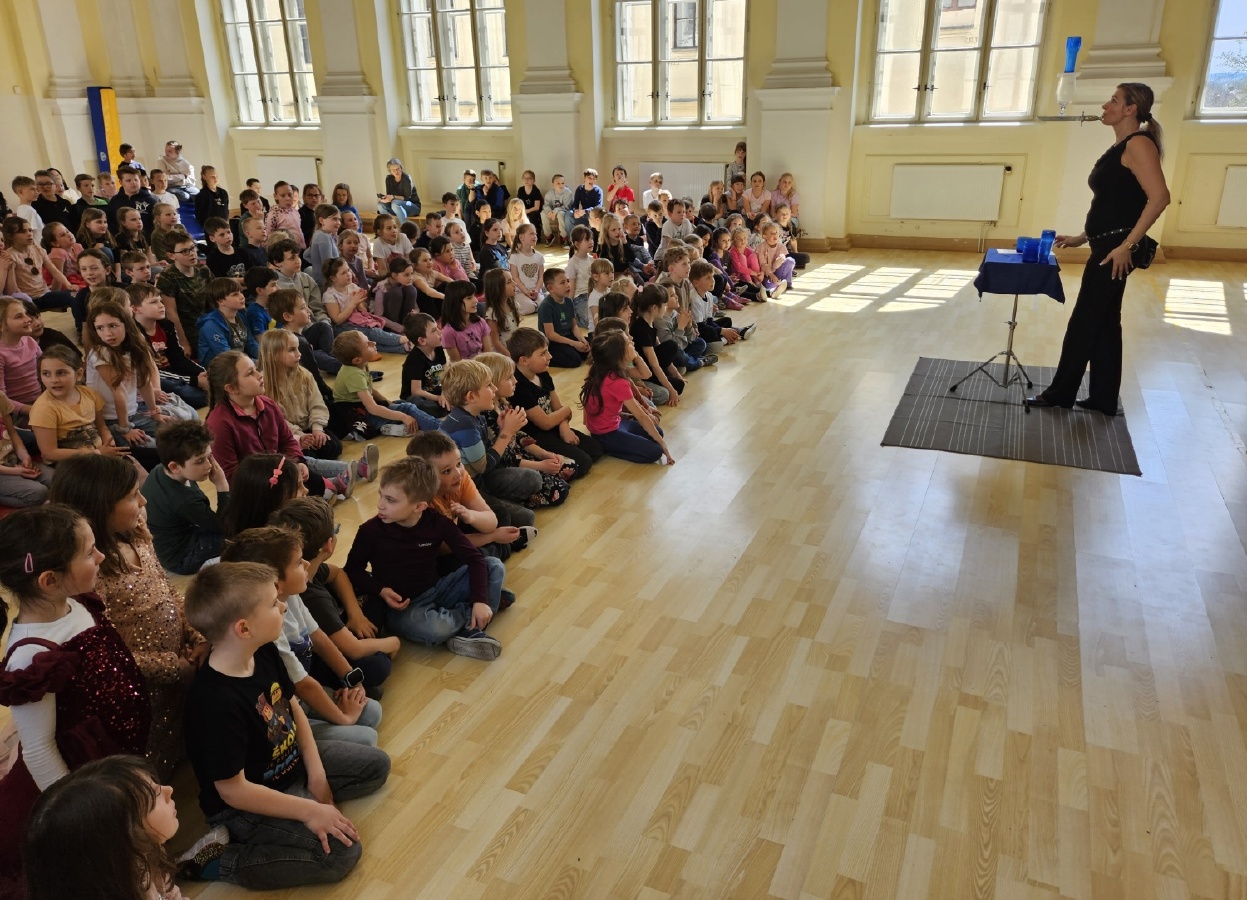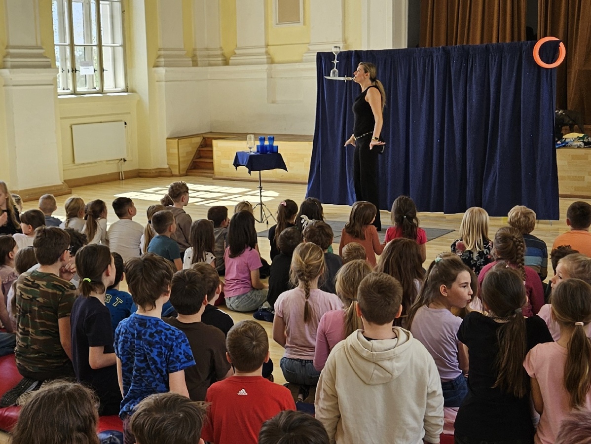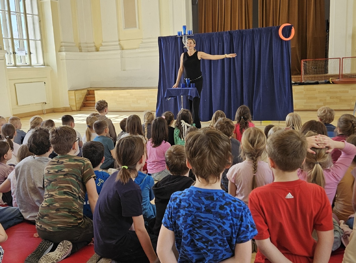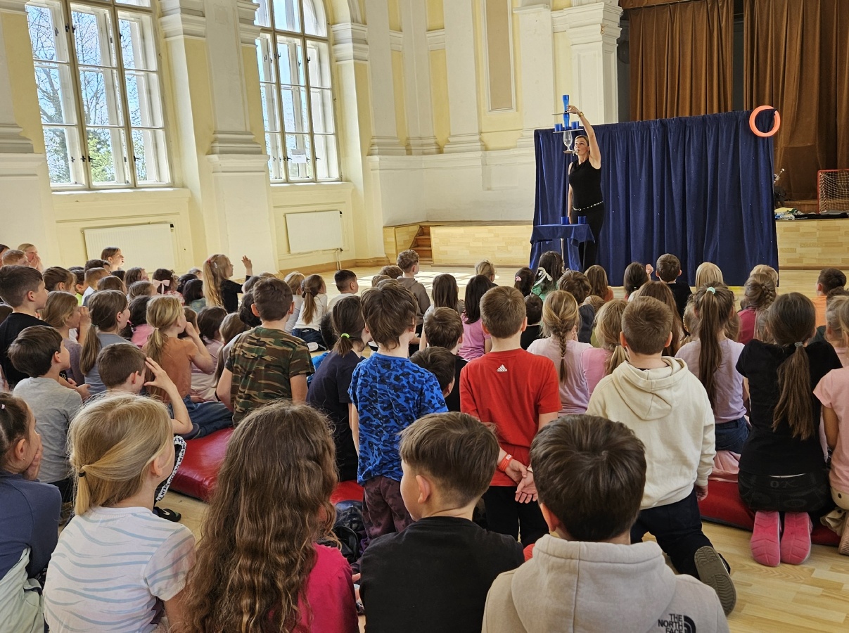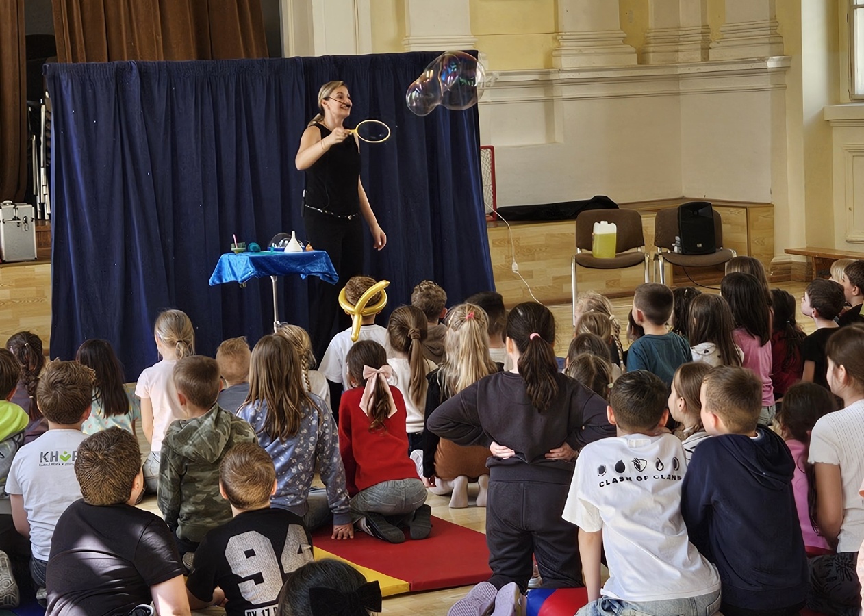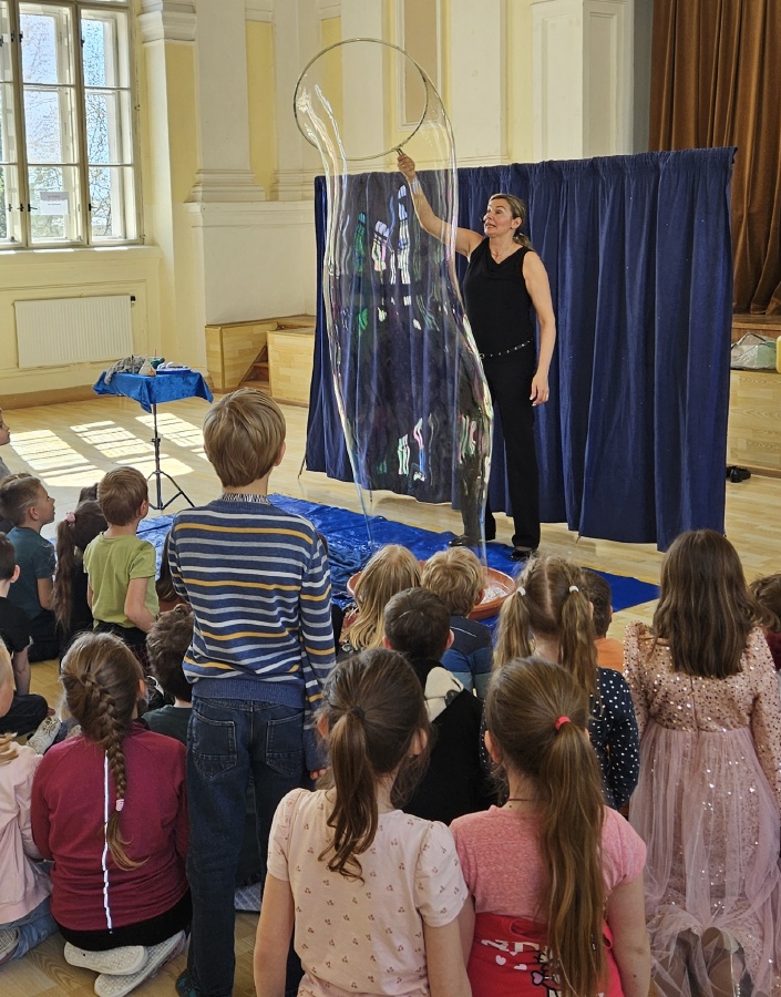 Ve středu 15.dubna nás navštívila kouzelnice Ingrid se svojí bublinovou show. Představení plné žonglování, cvičení s pejskem, kreací s kruhy a kouzelnickým překvapením děti napjatě sledovaly a do vystoupení se i aktivně zapojily. Vyvrcholením představení byla bublinová show. Děti okouzlily bubliny jak velké, tak malé. Nakonec je potěšilo, když dostaly možnost nechat se obklopit velkou bublinou.