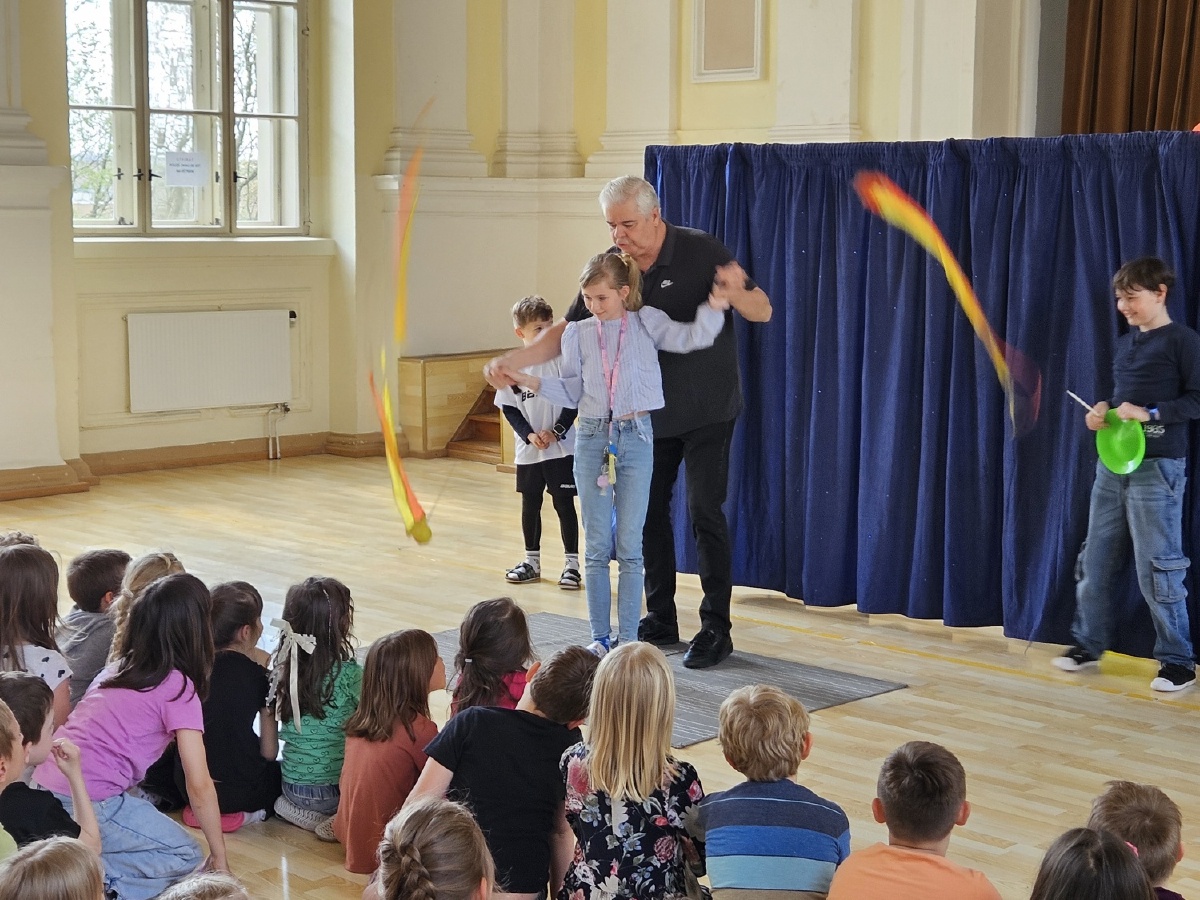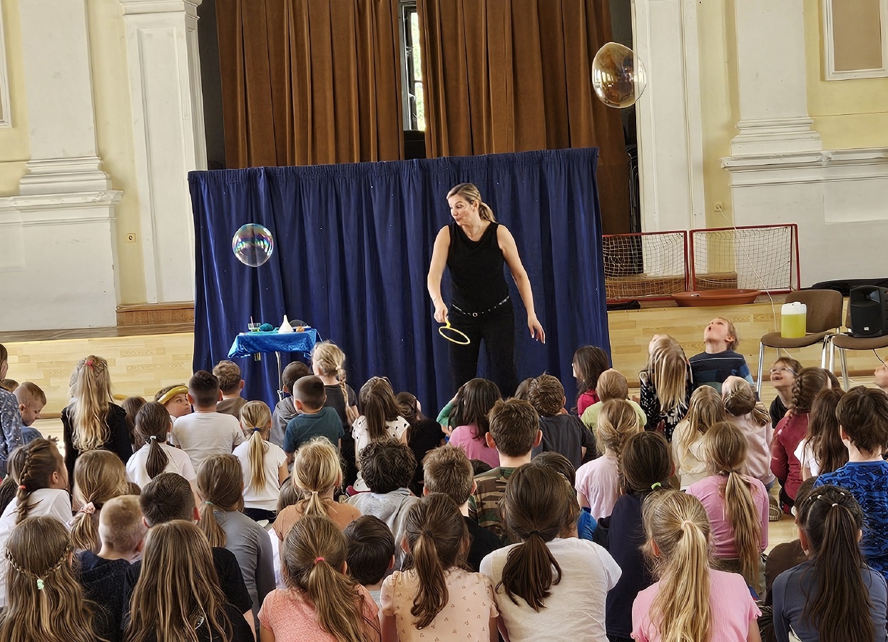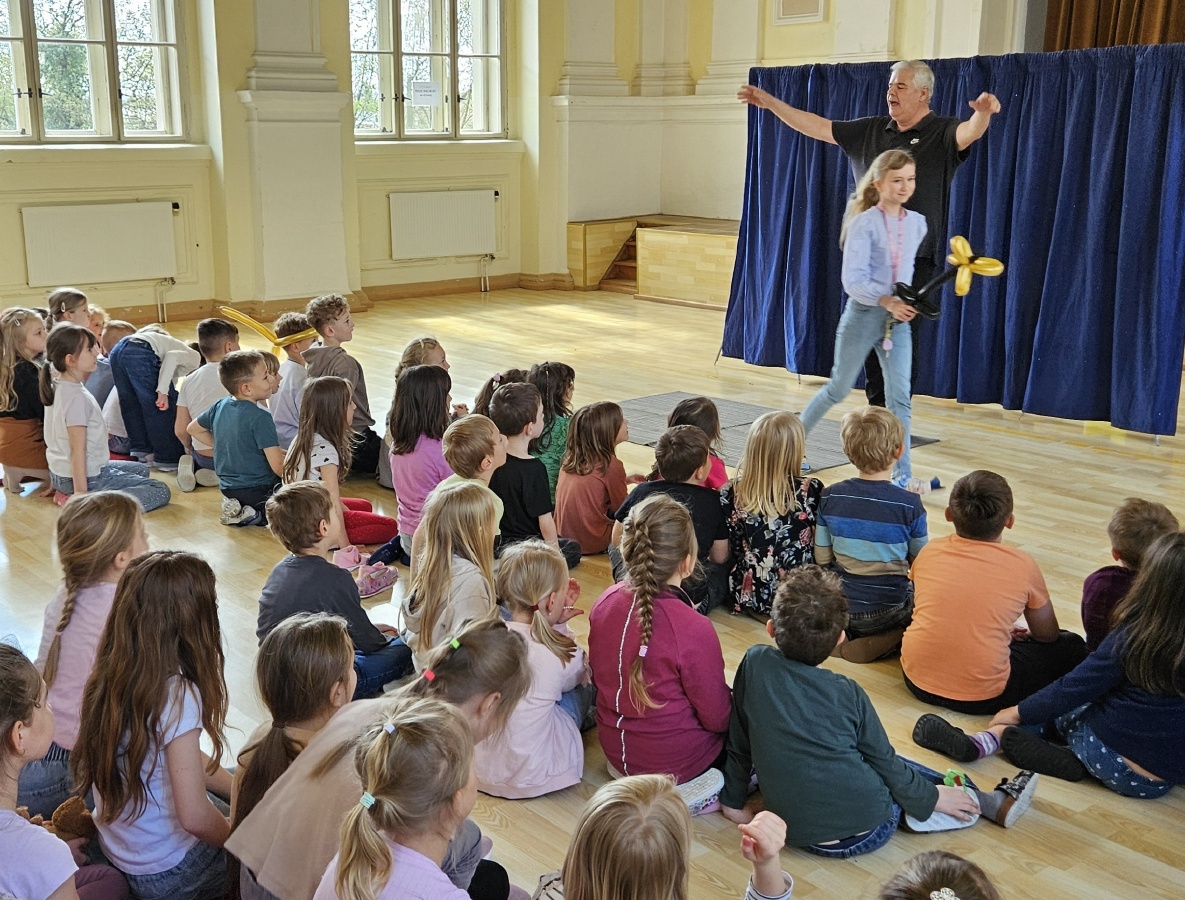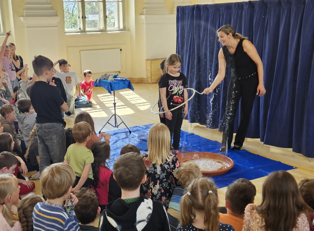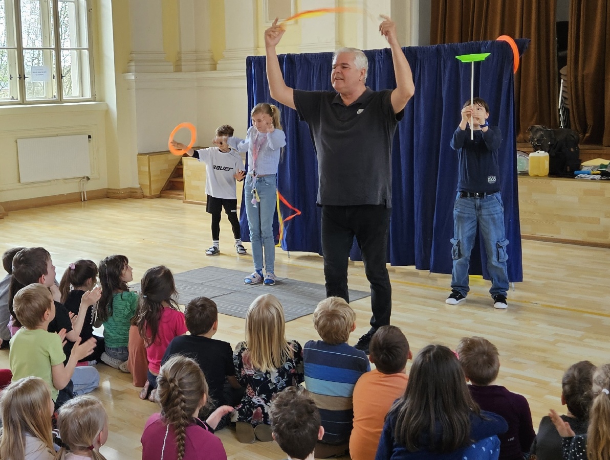 Ve středu 15.dubna nás navštívila kouzelnice Ingrid se svojí bublinovou show. Představení plné žonglování, cvičení s pejskem, kreací s kruhy a kouzelnickým překvapením děti napjatě sledovaly a do vystoupení se i aktivně zapojily. Vyvrcholením představení byla bublinová show. Děti okouzlily bubliny jak velké, tak malé. Nakonec je potěšilo, když dostaly možnost nechat se obklopit velkou bublinou.