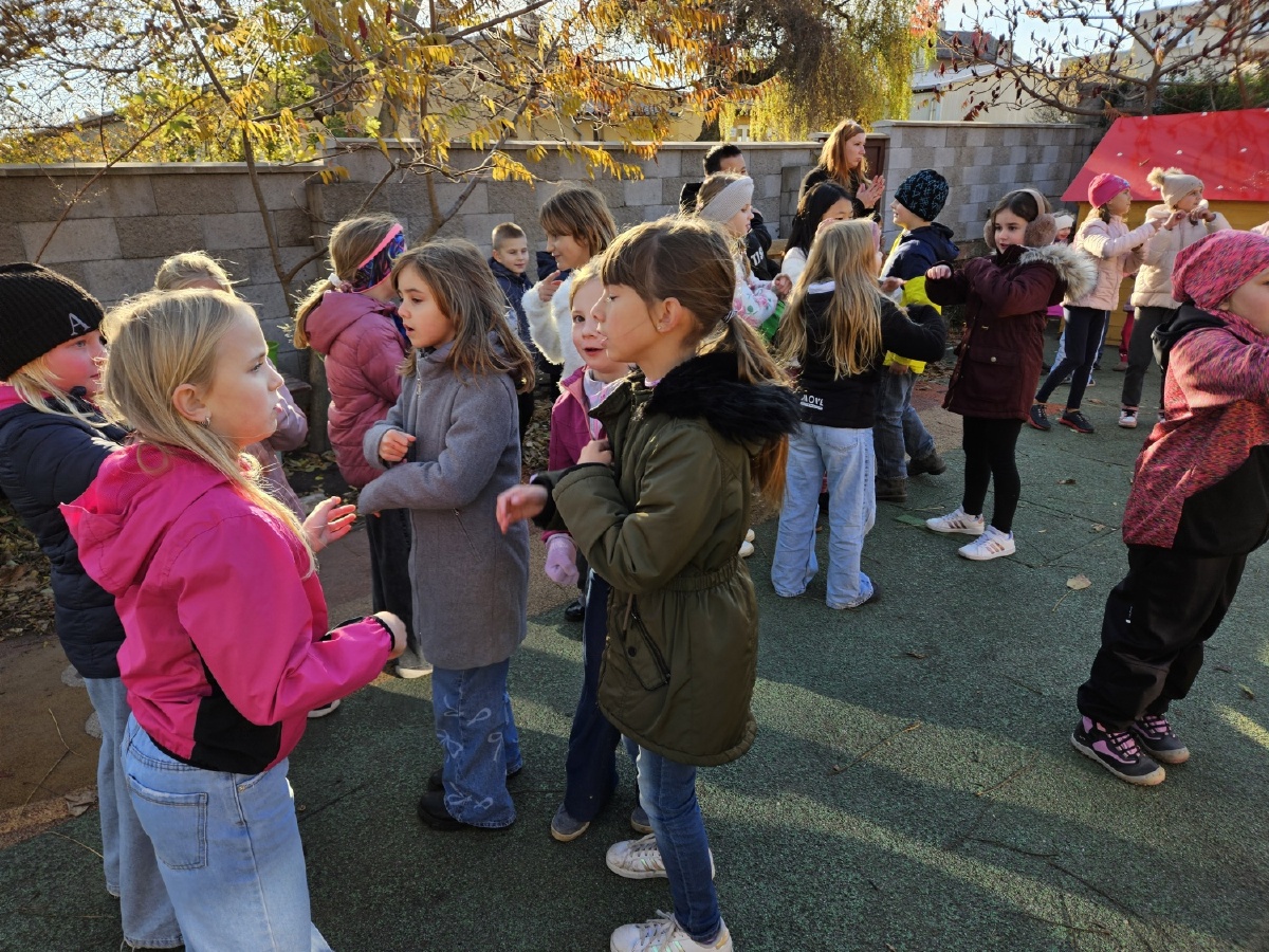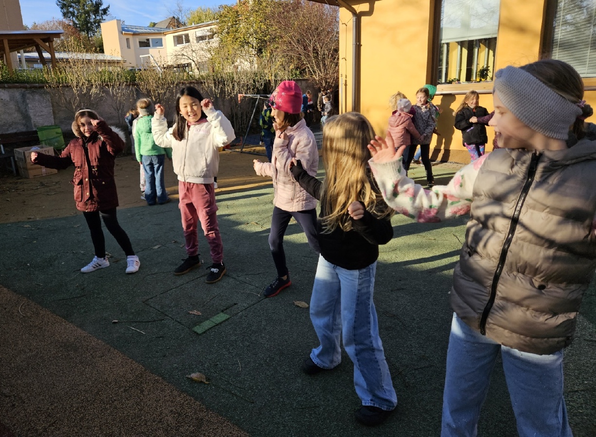 První listopadový pátek se konalo třetí celodružinové shromáždění v tomto školním roce. Vyhlásili jsme vítěze říjnové výtvarné soutěže na téma houba a zahájili novou, tentokrát budeme malovat anděly. Pověděli jsme si pravidla chování a dodržování bepečnosti, připomněli si pravidelný úklid hraček i svého oblečení....A už tradičně jsme zakončili naše setkání na hřišti za družinou oblíbenou diskotékou.