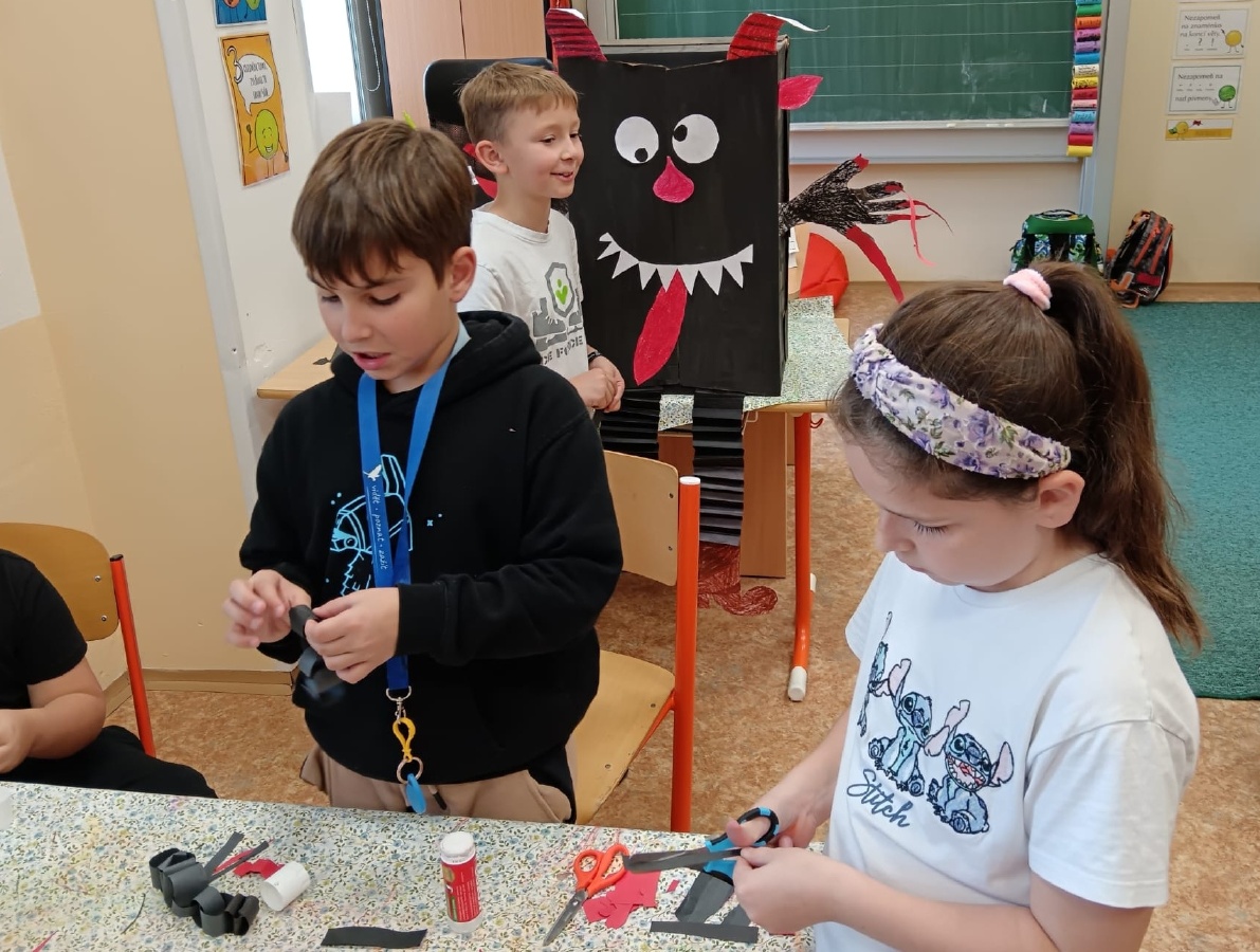 Děti z naší družiny se s nadšením zapojily do výroby prostorových 3D výrobků, které budou součástí chystané výstavy Peklo v Dominiku.  Při práci využily různé materiály i svou fantazii a výsledkem jsou originální a nápadité výtvory, které stojí za zhlédnutí.  Zapojilo se všech 10 oddělení. Výstava se bude konat od 3. listopadu do 7. prosince v DDM Kutná Hora a určitě nabídne nejen pohled na dětskou tvořivost, ale také ukázku šikovnosti a týmové spolupráce našich malých výtvarníků.
