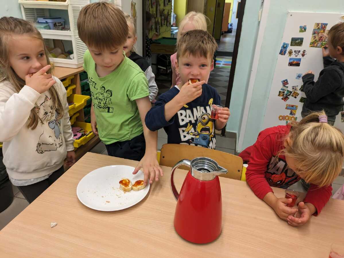 Přišel podzim a chřipka s rýmou obcházejí naši školu. V oddělení Krtečků si proto udělali Šípkový den, aby si připomněli, jaké vitamíny šípek obsahuje a jak můžeme bojovat proti nemocem a nachlazení. Ochutnali šípkový džem, uvařili si šípkový časj a namalovali šípky na větvičku, kterou vytvořili rozfoukáním tuší.