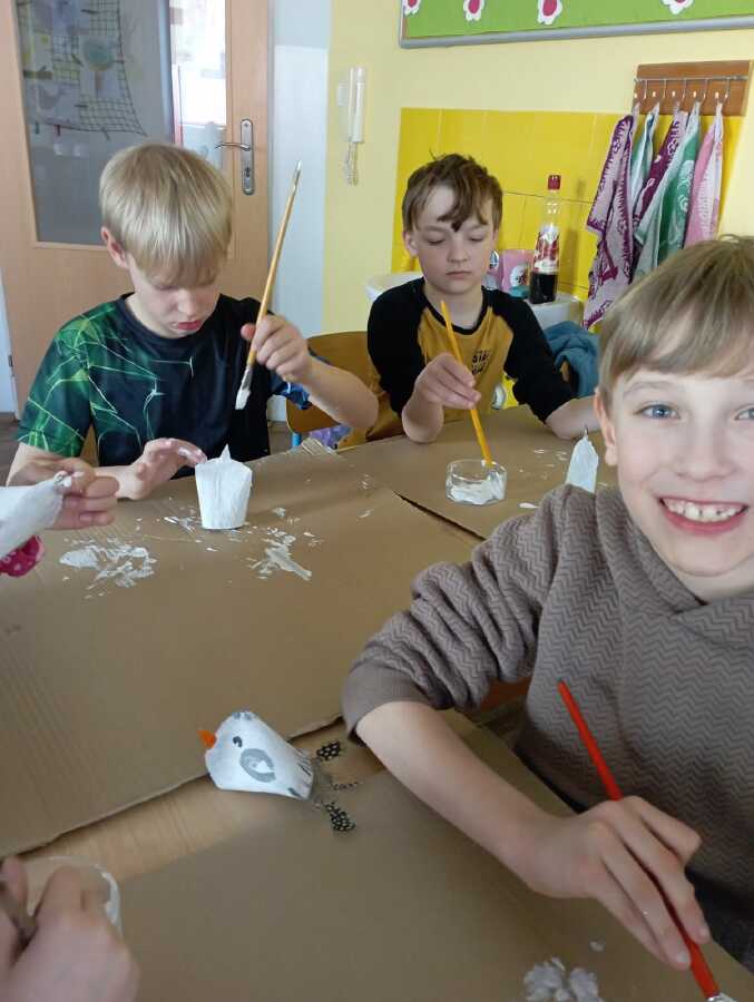 Ve školní družině se v těchto dnech věnujeme přípravám na blížící se velikonoční jarmark, který se bude konat v úterý 24.března v okolí hlavní budovy školní družiny. Děti tvoří řadu dekorací s jarními a velikonočními náměty, pletou pomlázky, vyrábí zápichy, zdobí kraslice, věnce, sejou osení, atd. Starší spolužáci ze školy nám s přípravou ochotně pomáhají.