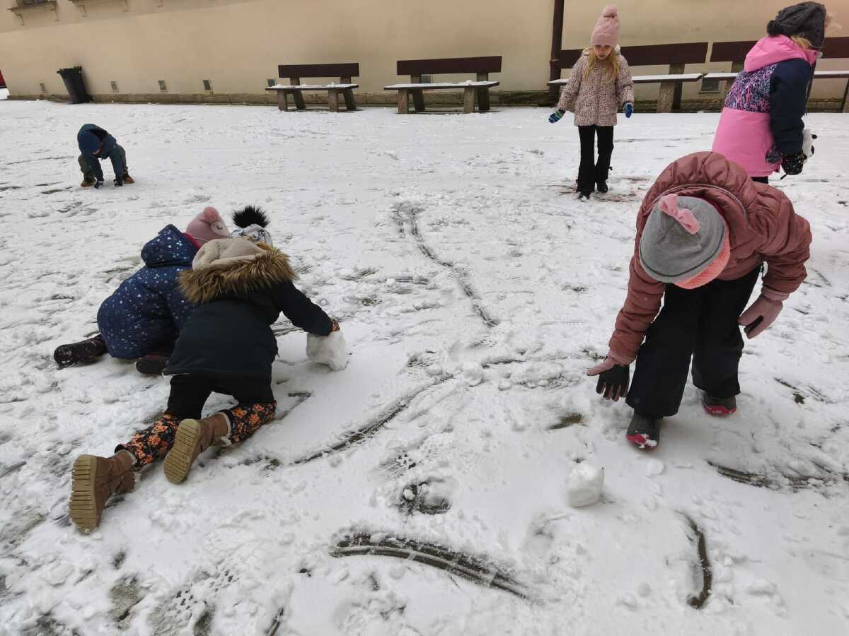 Dnes jsme si první sníh letošního roku ve školní družině opravdu užíváme, jak ke sněhovým hrátkám na hřišti, tak na vycházce. Se sněhem je opravdu spoustu zábavy a přejeme si, aby sníh vydržel co nejdéle.