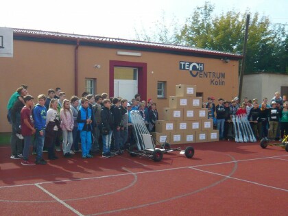 Od září 2017 jsme spolu s dalšími 14 základními a středními školami zapojeni do projektu Cadet Grand Prix. Projekt financuje TPCA a je zaměřen na podporu technického vzdělávání. Nám umožnil založit technický kroužek, ve kterém zájemci - mladí konstruktéři ze 6. a 7.ročníku sestaví z dodaného materiálu závodní cadetcaru - vozítko, natrénují jízdu a zúčastní se závodů mezi školami. Slavnostní zahájení projektu se konalo 19.9. v Základní škole Kolín V., kde chlapci s paní ředitelkou převzali materiál na dvě vozítka. Na práci se již těší!
