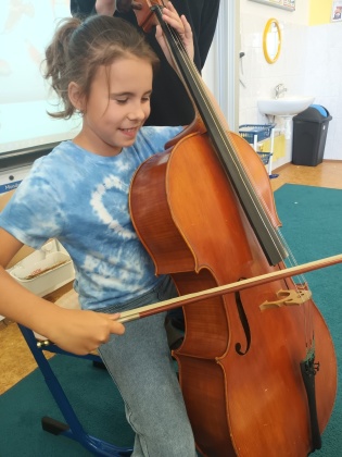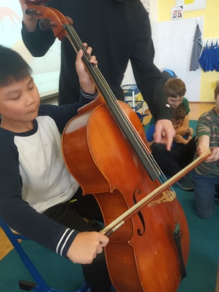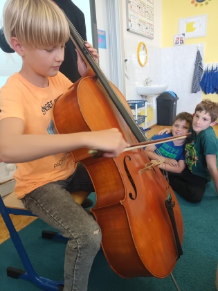 Děti ze III. B měly možnost si poslechnout, jak zní hra na violoncello. Dozvěděly se, jak se jednotlivé části tohoto krásného hudebního nástroje nazývají a do jaké skupiny nástrojů patří. Nakonec si mohly vyzkoušet, jak se u cella sedí, jak se drží smyčec a pokusit se vykouzlit tón. Moc je to bavilo. Pak jsme si ve třídě pustili nahrávku skladby hrané právě na violoncello jak v orchestru, tak sólo. Brzy se těšíme na další hudební nástroj, který nám představí další z našich mladých muzikantů ze třídy. Mgr. Markéta Štifterová