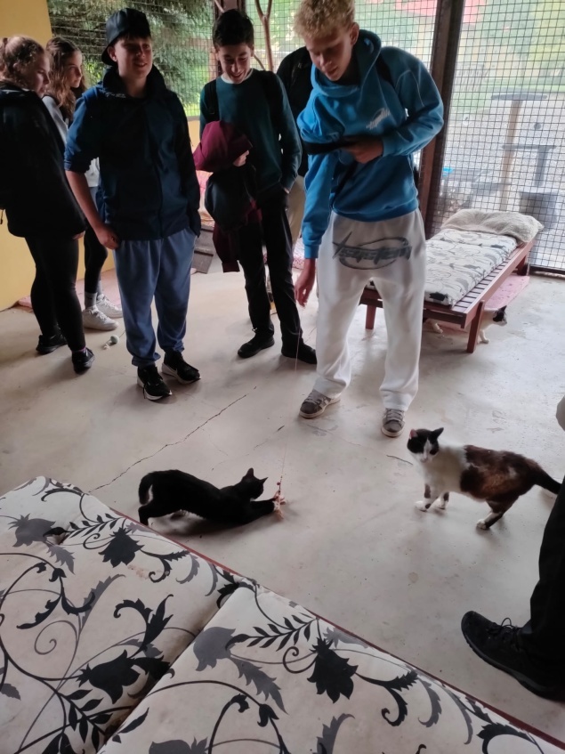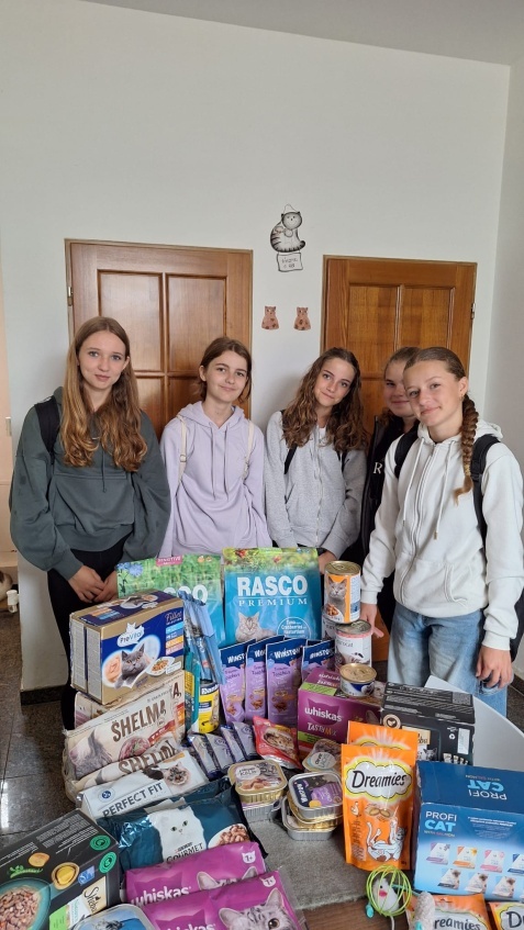 Součástí naší návštěvy bylo i předání finančního daru, pamlsků, granulí, hraček a dalších drobných dárečků, které jsme předem vybrali a donesli do školy. A protože bychom chtěli pomáhat i dlouhodobě, rozhodli jsme se adoptovat na dálku některou z kočiček tohoto útulku, který funguje na základě dobrovolnictví a darů, poskytuje nejen krmení a střechu nad hlavou, ale také veterinární péči, kastraci a pomoc s adopcí do nových rodin. Byl to i přes nepřízeň počasí krásný den plný úsměvu a laskavosti. Žáci VII. A, VII. B a třídní učitelky Šárka Dáňová, Monika Krejčová