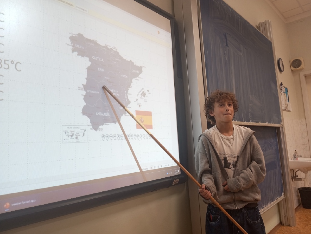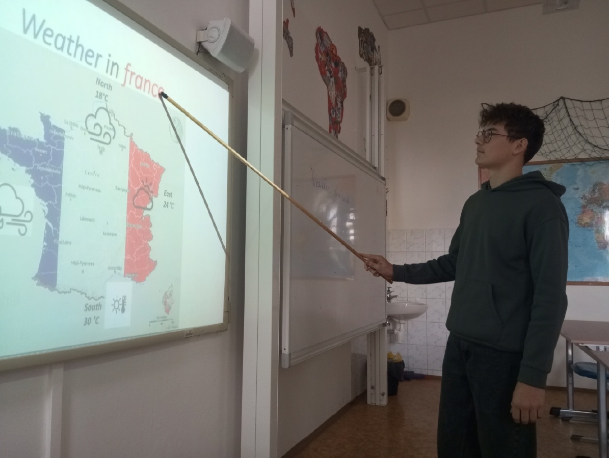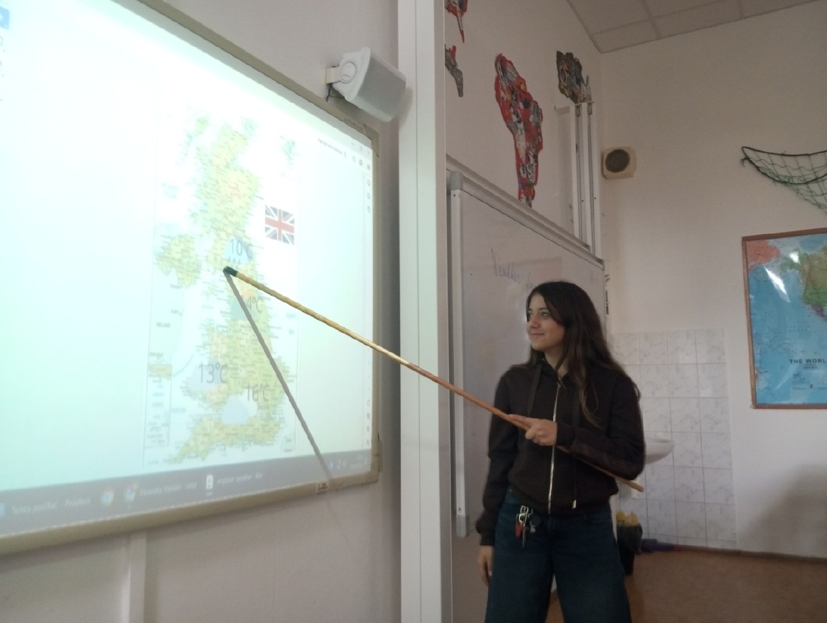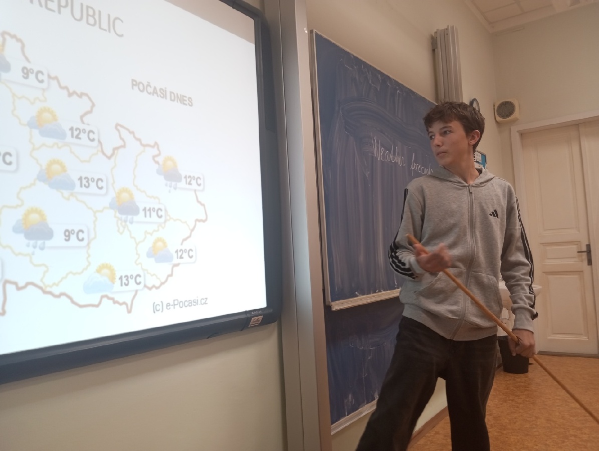 V hodinách angličtiny si žáci 8. tříd vyzkoušeli netradiční, ale zábavný výstup – stali se moderátory počasí. Připravili si vlastní předpověď počasí, sami si zvolili zemi i datum, ke kterému se jejich předpověď vztahovala, a za pomoci dříve probrané slovní zásoby si vytvořili krátký text, který poté prezentovali. Tato aktivita sloužila nejen k procvičení slovní zásoby na téma počasí, ale zároveň rozvíjela mluvní dovednosti, prezentační schopnosti a sebevědomí při vystupování před ostatními – to vše v angličtině. Někteří žáci pojali úkol velmi kreativně a připravili celé scénky, jiní naopak překonávali svou ostýchavost při mluvením před spolužáky. Podobné výzvy pomáhají žákům nejen rozvíjet jazyk ale i odvahu promluvit. Zároveň dělají výuku angličtiny pestřejší a přibližují ji skutečným situacím ze života. Mgr. Hana Votavová