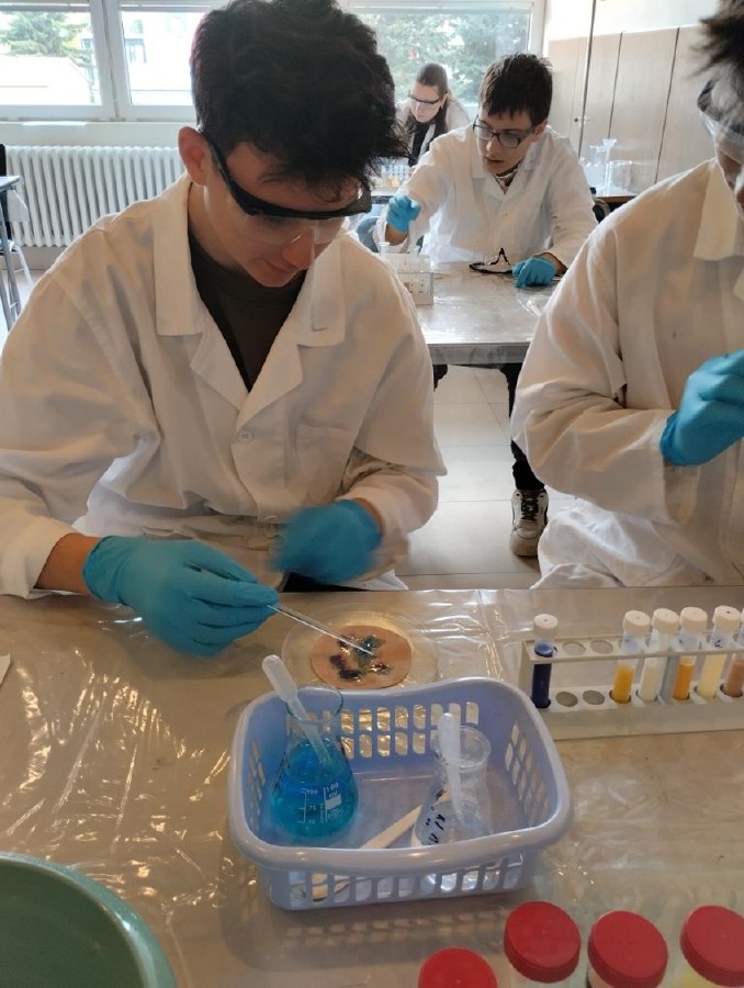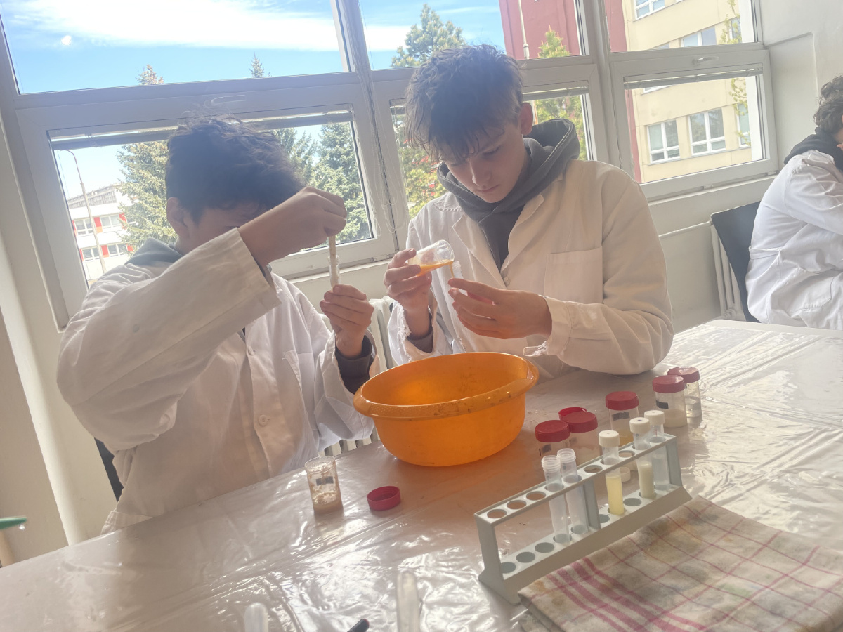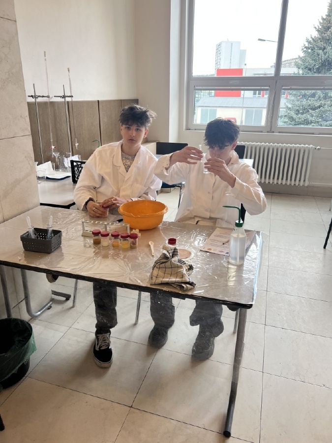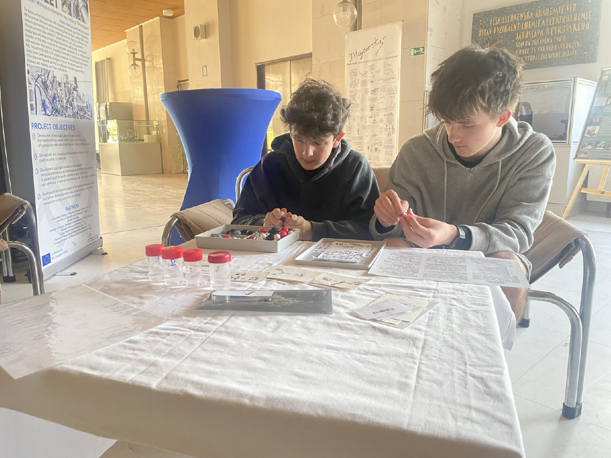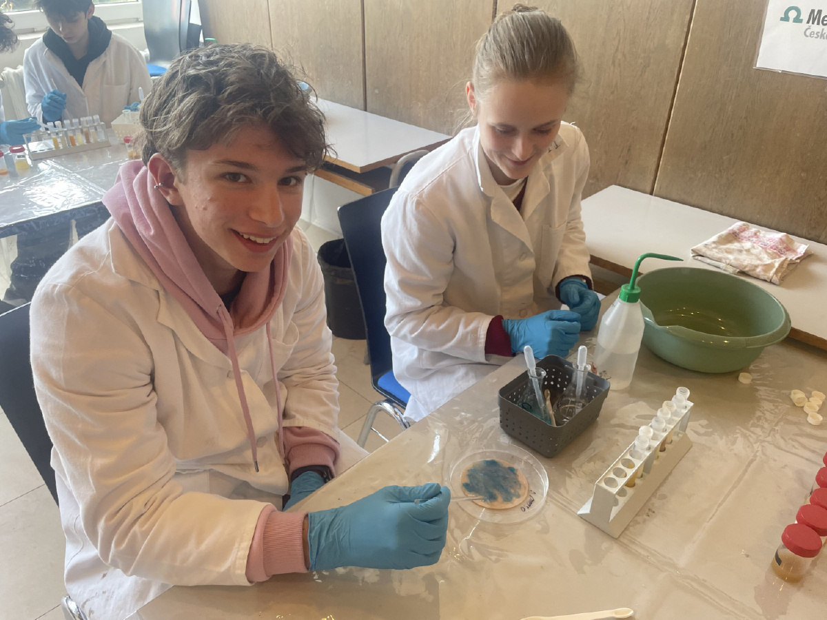 Naši deváťáci navštívili Ústav fyzikální chemie J. Heyrovského, kde si v rámci workshopu vyzkoušeli práci v laboratoři. Žáci se věnovali analýze a stavbě molekulárních modelů organických látek a praktickým důkazům bílkovin ve vzorcích potravin (mléko, jogurt, vajíčko, šunka, džus). Právě možnost samostatného experimentování a práce s modely pomohla žákům lépe pochopit strukturu látek, o kterých se běžně učíme v hodinách. Celý program doplnilo seznámení s odkazem nositele Nobelovy ceny Jaroslava Heyrovského. Pro žáky bylo přínosné především to, že si mohli vše sami osahat a vidět výsledky své práce přímo ve zkumavkách. Ing. Šárka Nováková