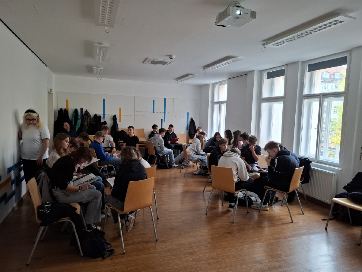 V pondělí 10. listopadu se třída IX. B zúčastnila exkurze do Židovského muzea v Praze. Součástí programu byla nejen prohlídka Staronové a Pinkasovy synagogy a Starého židovského hřbitova, ale také vzdělávací workshop Hanin kufřík. Během workshopu se žáci prostřednictvím práce s autentickými dokumenty a historickými materiály seznámili s osudy konkrétních židovských rodin z období Protektorátu Čechy a Morava. Na základě společného „pátrání“ ve skupinách zpracovali vlastní závěry. Program vznikl podle knihy Karen Levinové Hanin kufřík, která vypráví skutečný příběh židovské dívky Hany Bradyové. Exkurze studentům přiblížila nejen dějiny holocaustu, ale také důležitost paměti a osobní odpovědnosti za uchování historie. Mgr. Kristýna Hurychová, Mgr. Kateřina Vyčichlová