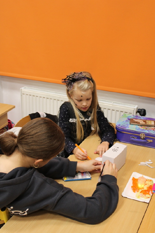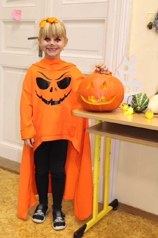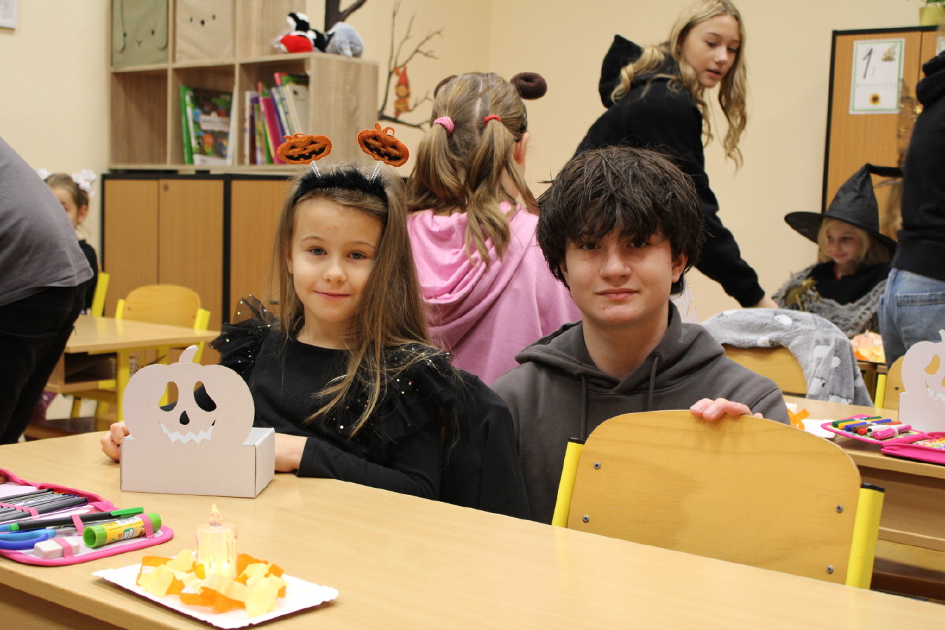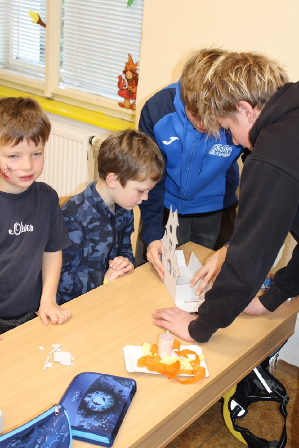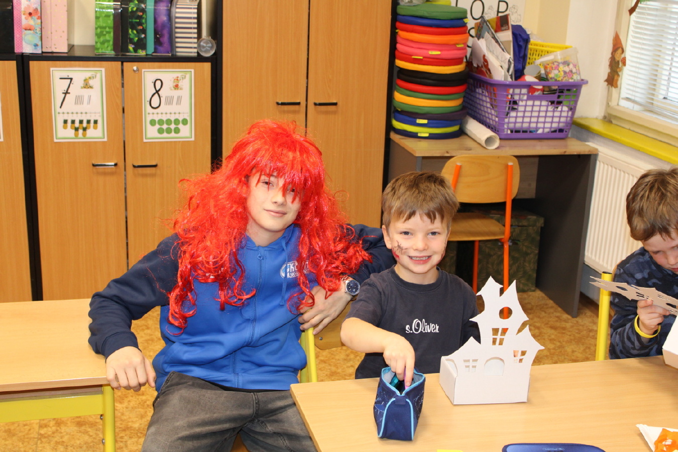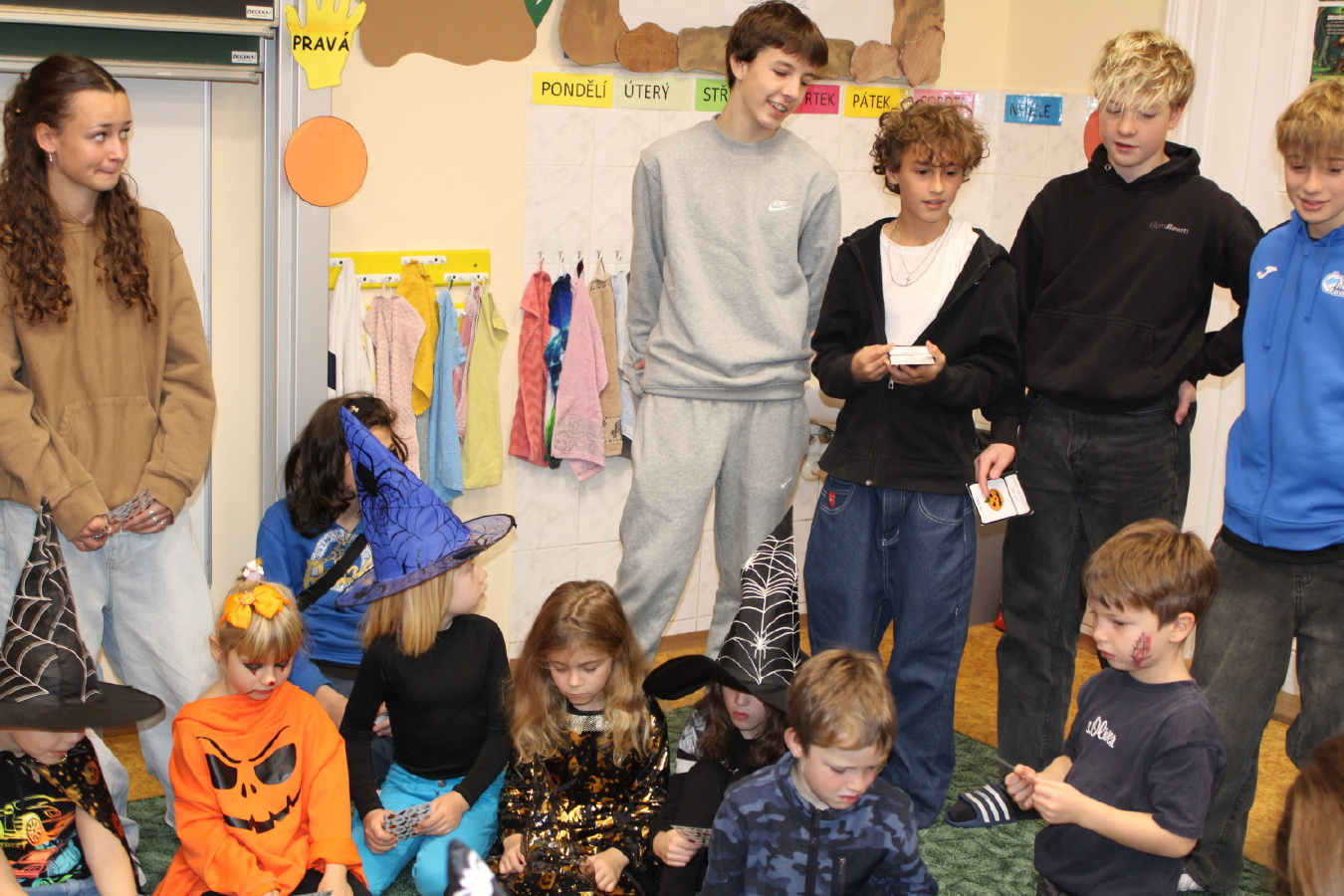 V pátek 31. října ožila naše škola v duchu Halloweenu. Prvňáčci a osmáci se setkali, aby si užili čas společného tvoření, her a strašidelné zábavy. Prvňáčci přivítali své starší kamarády ve skvěle vyzdobené třídě, kde nechyběly pavučiny, dýně a další strašidelné dekorace. Děti měly připravené úžasné kostýmy, které vykouzlily tu pravou halloweenskou atmosféru. Osmáci výzdobu jejich třídy skvěle doplnili velkou vydlabanou dýní se světýlky. Společně strávili první vyučovací hodinu, během které si povídali, vyráběli menší dekorace a hráli zábavné hry, byly to opravdu chvíle pohody a radosti. Poté se osmáci vrátili do svých tříd a u prvňáčků pokračovalo halloweenské tvoření, při němž vznikaly krásné výrobky plné fantazie a barev. Už teď se všichni těšíme na další setkání. Mgr. Šárka Dáňová, Mgr. Jana Němečková Růžičková