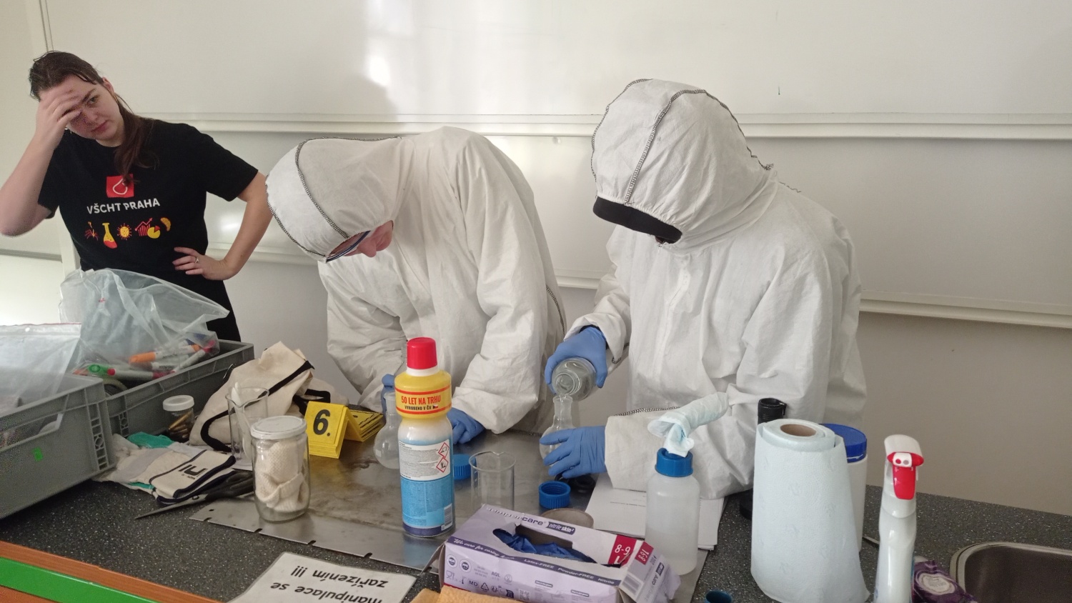 V pátek 6. března proběhla v IX. A a IX. B hodina moderní chemie na téma forenzní analýza. V úvodní části jsme si vysvětlili, co je forenzní analýza, jakou roli má operativec a vyšetřovatel a jak správně postupovat při vyšetřování. Dva žáci - operativci si tento postup prakticky vyzkoušeli. Zároveň jsme vyvrátili několik mýtů a nepravdivých postupů, které se objevují v detektivních seriálech. Na závěr jsme si vyzkoušeli techniku odebírání otisků prstů. Hodiny moderní chemie jsou popularizačním projektem VŠCHT Praha a jejich cílem je zábavnou formou - pokusy a dialogy - představit žákům na ZŠ a SŠ chemii v každodenním životě.