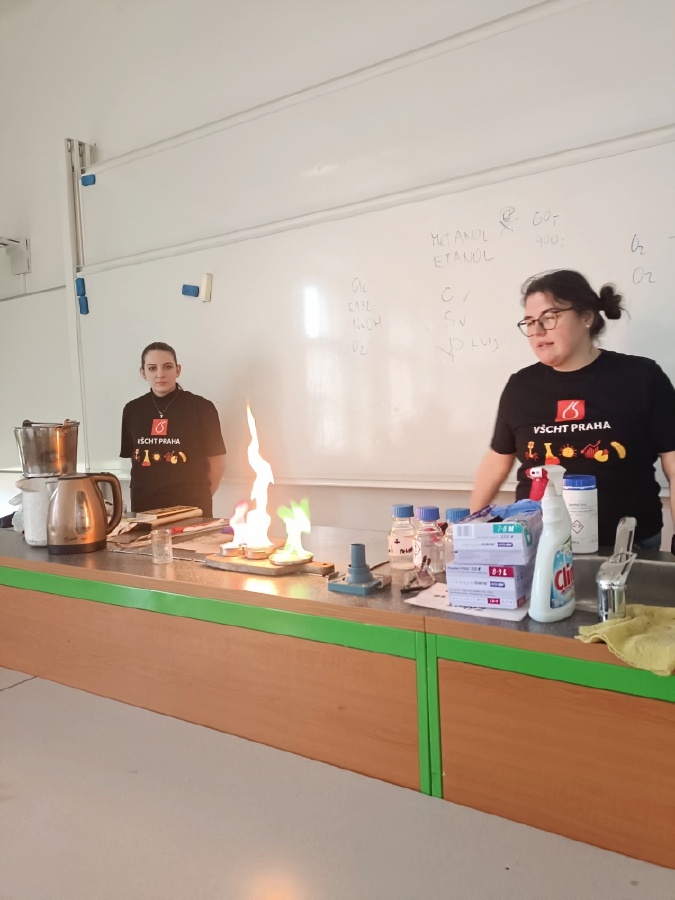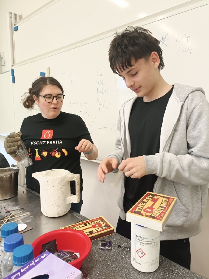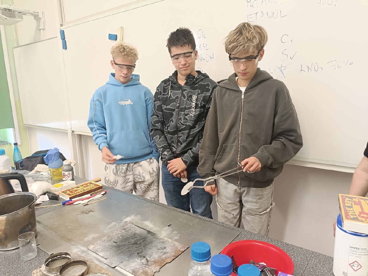Ve čtvrtek 27. listopadu proběhly u nejstarších studentů hodiny moderní chemie a forenzní vědy. Osmákům a deváťákům přinesly pořádnou dávku objevování a experimentů. Osmáci si vyzkoušeli efektní pokusy se suchým a kapalným dusíkem, se střelným prachem a porovnali hořlavost celulózy a nitrocelulózy. Deváťáci se naopak ponořili do světa forenzní analýzy – naučili se roli operativce a vyšetřovatele, vyvrátili mýty z detektivních seriálů a prakticky si vyzkoušeli odebírání otisků prstů. Hodiny byly plná překvapení a inspirace pro mladé chemiky a detektivy. Ing. Šárka Nováková