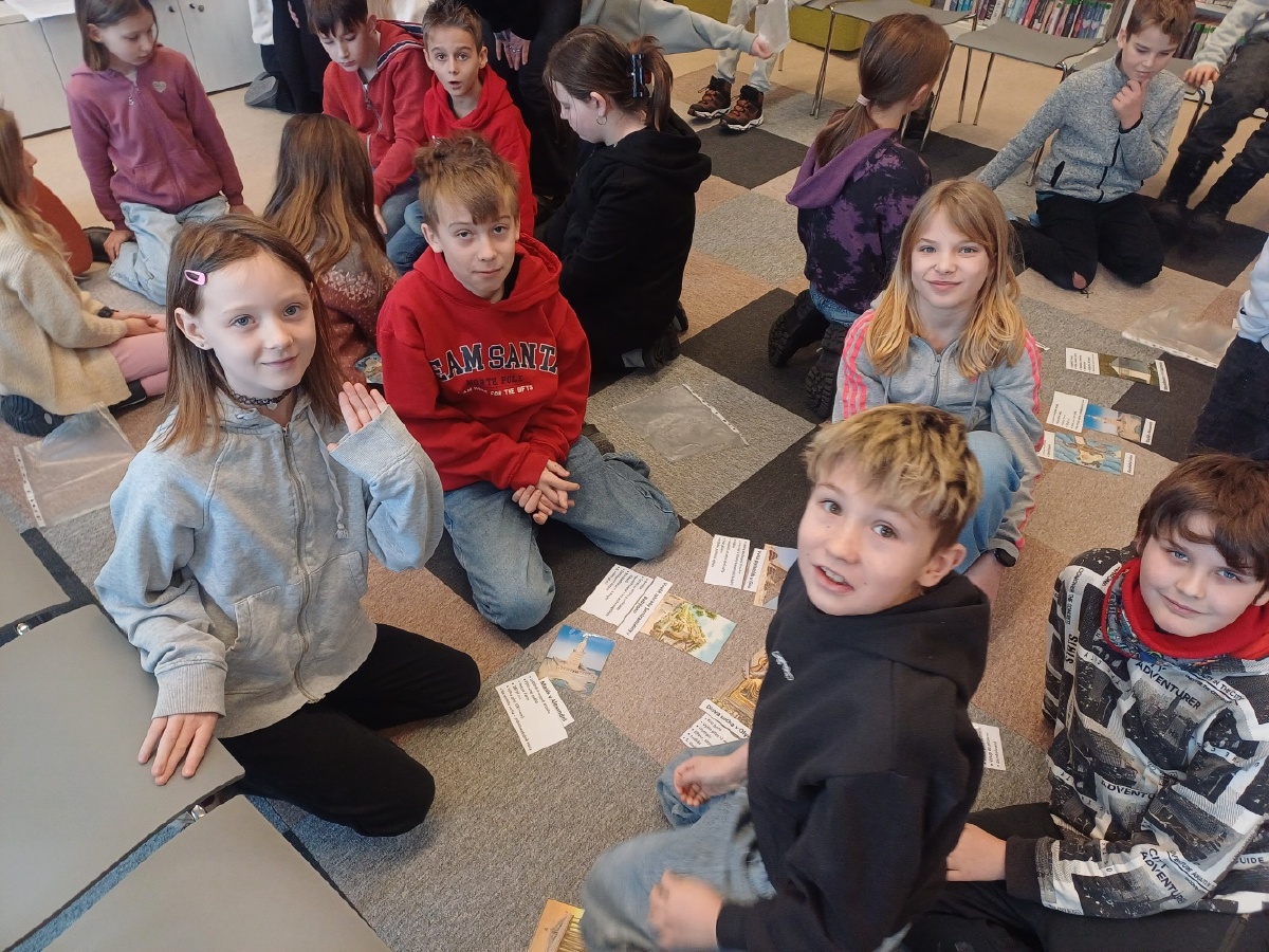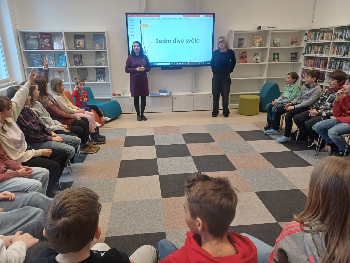Třída IV.D navštívila Kutnohorskou knihovnu, kde si pro nás paní knihovnice připravily velmi zajímavý a poutavý program na téma sedm divů světa. Děti se dozvěděly, které stavby mezi sedm divů světa patří, a některé z nich dokázaly jednotlivé divy dokonce samy vyjmenovat. Postupně jsme se seznamovali s jednotlivými divy starověkého světa a dozvěděli se o nich mnoho zajímavostí. Například Velká pyramida v Gíze je jediným divem světa, který se dochoval dodnes, socha boha Dia v Olympii byla vyrobena ze zlata a slonoviny. Součástí programu bylo také video, které dětem pomohlo vše přehledně shrnout. Na závěr si žáci ve skupinkách vyzkoušeli své znalosti v praktickém úkolu – přiřazovali správné obrázky, názvy a informace k jednotlivým divům světa. Všem skupinám se úkol podařilo splnit na jedničku. Program se dětem velmi líbil a odcházely nadšené a plné nových poznatků. Už teď se těšíme na další setkání v knihovně. Děkujeme paním knihovnicím za milý přístup a velmi zajímavý a povedený program. Mgr. Miroslava Falgeová