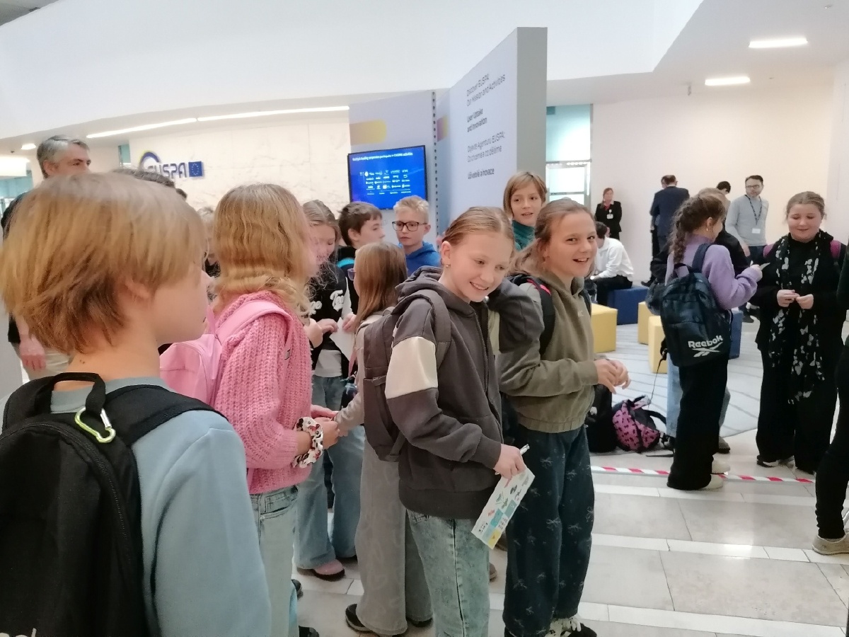 V pátek 21.listopadu se vydali páťáci z áčka a déčka na den otevřených dveří do agentury EUSPA. Hned od počátku je fascinovalo celé prostředí, kde se pohybovala řada cizinců a hned je upoutalo, že spolu všichni mluví pouze anglicky. Celý program zahájila přednáška, kde jsme se dozvěděli, co EUSPA je a co zajišťuje za služby. Bylo nám vysvětleno, co jsou to satelity, jak fungují a k čemu slouží systémy Galileo a Copernicus. Po půlhodinové přednášce jsme si prošli několik stanovišť, kde bylo vidět, co je výsledkem práce agentury EUSPA a zahráli si pár her. Největším tahákem pro děti byla možnost nechat si přes klíčovací plátno udělat fotografii sebe sama ve vesmíru. Přijetí zaměstnanci EUSPY bylo velice vstřícné a milé, děti si domů odnesly nejen zajímavé informace a poznatky, ale i několik dárečků. Mgr. Kateřina Vyčichlová