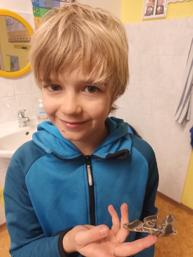 „Dobrý den, paní učitelko, chtěla byste housenky?“ Takovou neobvyklou, ale velmi lákavou nabídku obdržela třídní učitelka IV. B. Jedna z maminek totiž nabídla třídě housenky martináče pajasanového, aby děti mohly na vlastní oči sledovat jednotlivá stádia vývoje tohoto krásného motýla. Spolu s housenkami dostala třída také větvičky s listy, kterými se housenky vydatně živily, a návod k jejich péči. Čtvrťáci se o své nové „spolužáky“ vzorně starali – pravidelně jim rosili dočasný domov, velkou sklenici, a nezapomínali ani na úklid. Brzy přišel další napínavý okamžik: první housenka se zakuklila. Děti kuklu opatrně zavěsily na šňůru pomocí kolíčku a netrpělivě čekaly na další. Během několika dnů se dočkaly – na šňůře nakonec viselo čtrnáct kukel. Poté následovalo několik týdnů očekávání, až se z kukel vylíhnou motýli. A čekání stálo za to! Čtvrťáci si mohli prohlédnout i vyfotografovat nádherné martináče. Samičky dokonce nakladly vajíčka – a kdyby je samečci oplodnili, mohl by celý příběh s housenkami začít znovu. Mgr. Markéta Štifterová