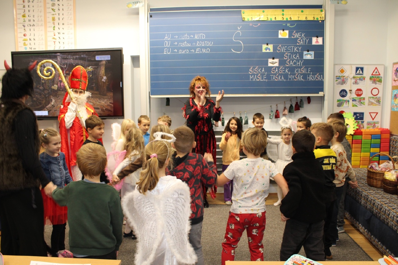 Prosinec byl pro prvňáčky z céčka především ve znamení návštěvy různých vánočních akcí, besídek a vystoupení a co se výuky týče - tak seznámení, poznávání a čtení malých tiskacích písmen. Žáci si užívali hodin tělesné výchovy s trenérem Bédou. Při hodinách hudební výchovy si s chutí společně zazpívali vánoční koledy a písničky. Nácvik z hodin pak využili i při návštěvě školní besídky a třídních vystoupení II. D a III. A, kde si neváhali s ostatními zazpívat. O Vánocích a vánočních zvycích se mnohé dozvěděli v knihovně a na Hrádku, kde byli na výstavě Vánoce na talíři a při té příležitosti si vytvořili krásné korálkové hvězdičky. Do třídy také zavítal Mikuláš se svou družinou čertů a andělů. Děti s radostí dodržovaly i většinu "speciálních dní" ze školního adventního kalendáře. V posledním týdnu se ještě stihly potkat se svými patrony ze VII. C. Na poslední školní den roku 2025 se děti moc těšily. Však také měly proč. Stromeček ve třídě byl sice letos malý, ale dárečků se tam vešlo dost. Největší radost byla z třídních kšiltovek, které děti pod stromečkem našly. Mají krásnou modrou barvu a každá z nich je opatřená jménem svého nositele. Všichni se moc těší, co jim nachystá leden. Bc. Lucie Kubínová